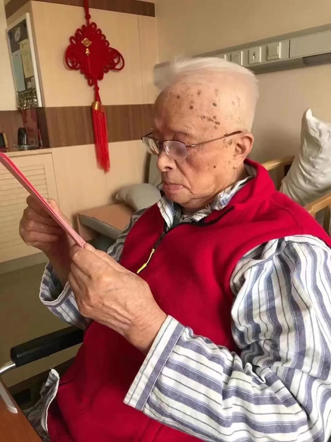 2月12日新春佳节,111岁施平在病房里向大家问候新年快乐