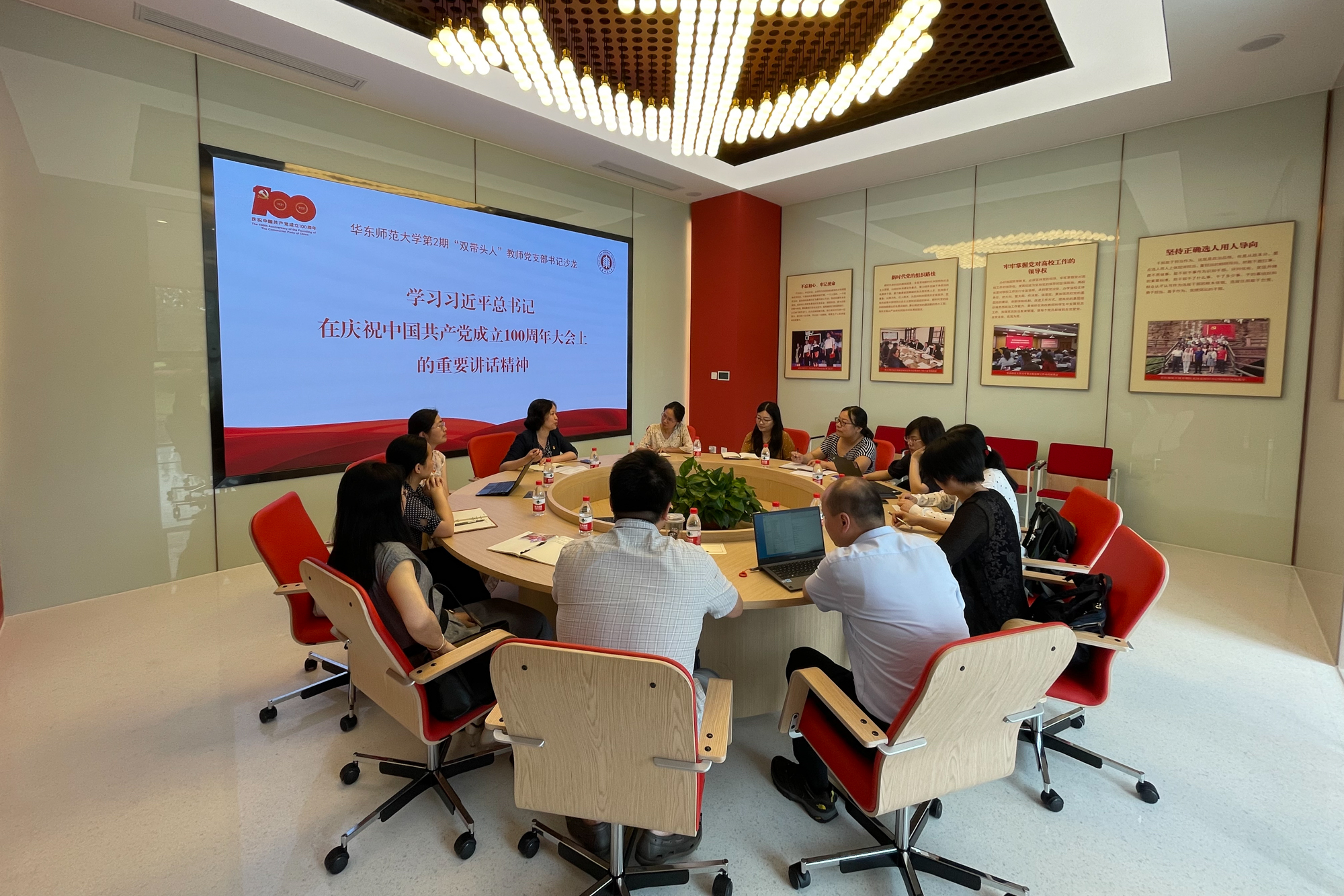 7月1日下午,第2期“双带头人”教师党支部书记沙龙以“学习习近平总书记在庆祝中国共产党成立100周年大会上的重要讲话精神”为主题,在闵行校区党建服务中心举行。来自中文系、历史学系、政治学系、马克思主义学院、经济与管理学部、通信与电子工程学院、地理科学学院、生态与环境科学学院、物理与电子科学学院、河口海岸科学研究院等单位的10位“双带头人”教师党支部书记和党委组织部相关负责同志参加沙龙。校党委常委、组织部部长程静参加并主持沙龙。