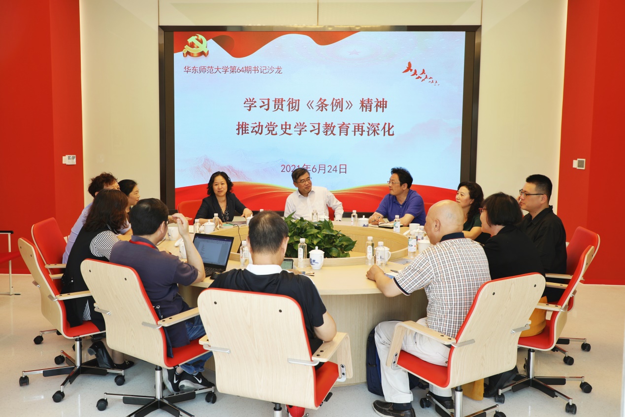 6月24日中午,第64期书记沙龙在闵行校区办公楼党建服务中心举行。来自中文系、历史学系、马克思主义学院、经济与管理学部、物理与电子科学学院、化学与分子工程学院、地理科学学院、生态与环境科学学院的党组织负责人,教育学部汪海萍研究员,党委组织部、党委教师工作部、人事处的负责同志参加沙龙。校党委副书记朱民参与交流。沙龙由校党委常委、组织部部长程静主持。
