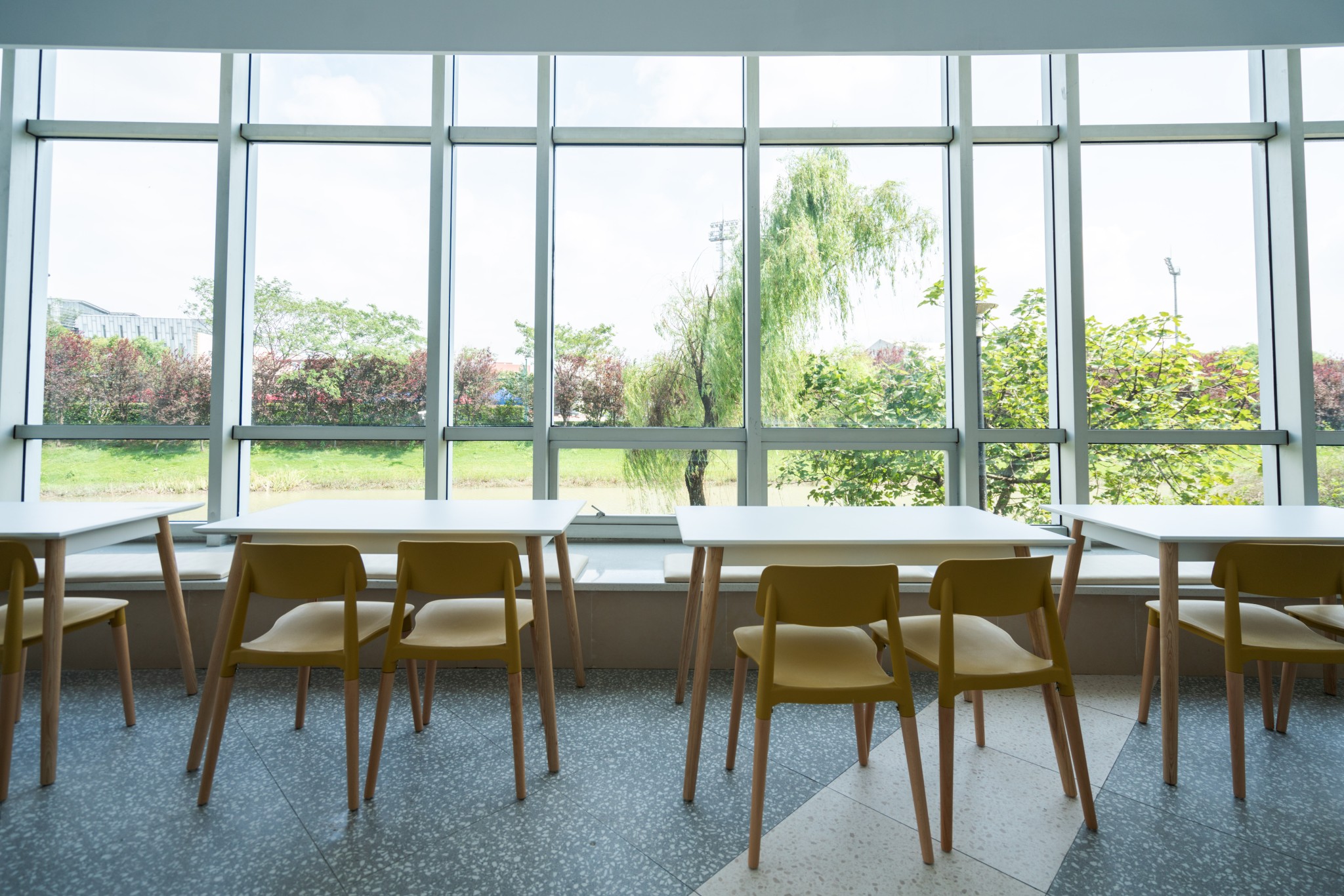 此次改造对原有结构不作改动,尽可能保留原有建筑元素。室内装修整体风格统一,以满足师生对就餐环境的需求,体现大学餐厅气质定位。木质桌椅与清新薄荷绿的餐具相得益彰。你喜欢吗?