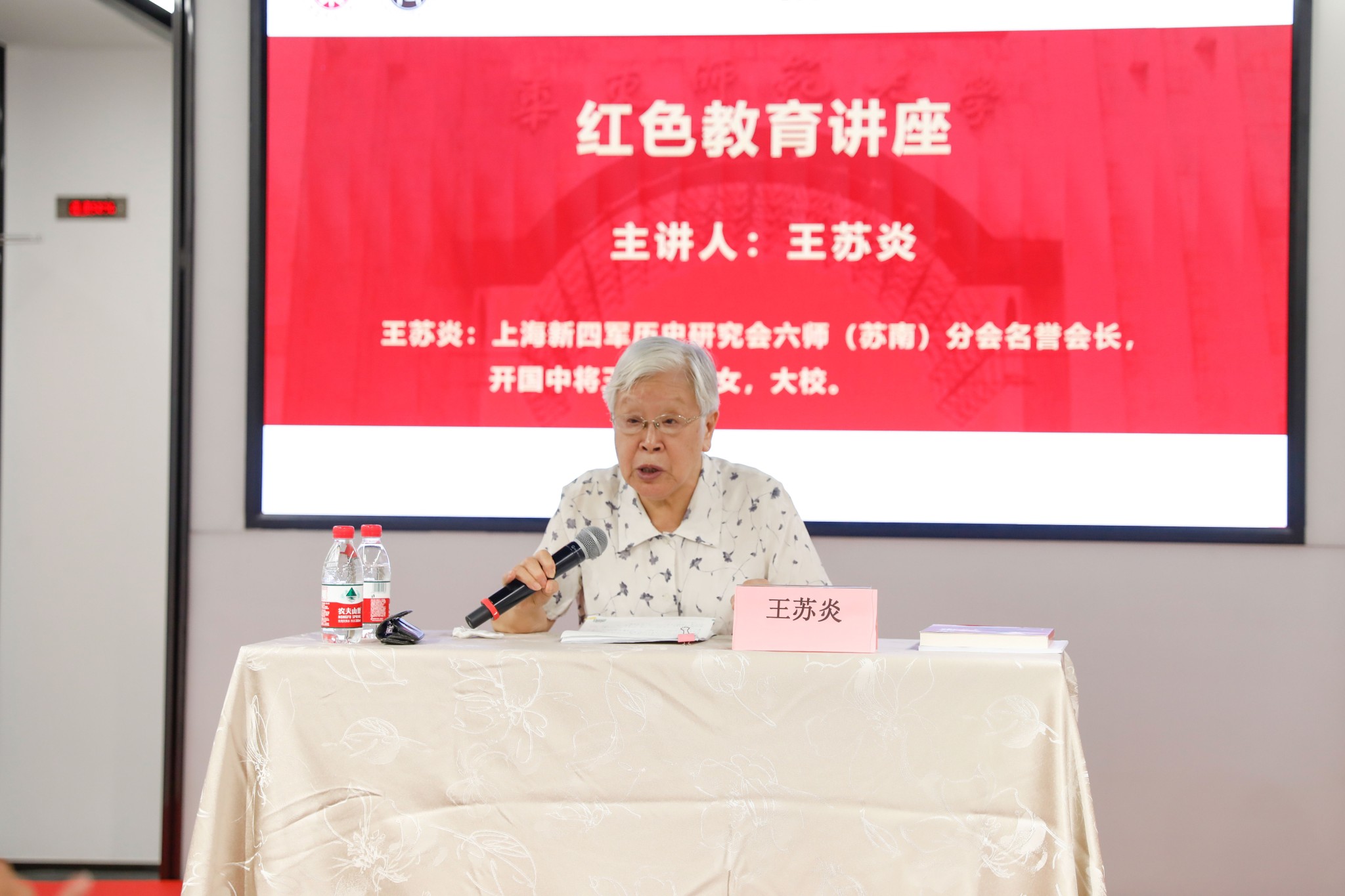 开幕式后,上海新四军历史研究会六师(苏南)分会名誉会长王苏炎大校为华东师大师生作党史学习教育讲座,讲述了开国中将王必成的革命故事。