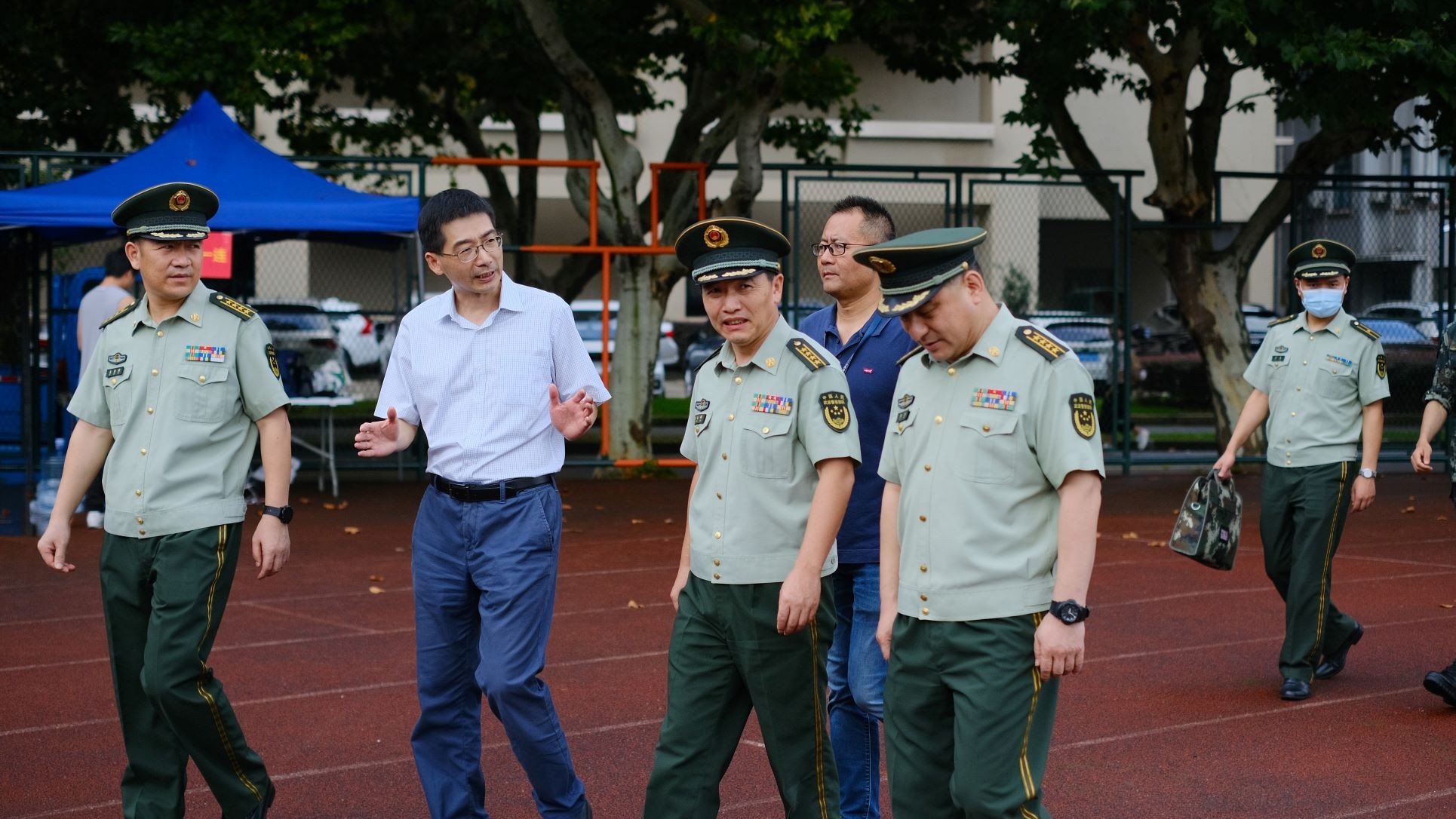9月3日,beat365正版唯一官网副校长顾红亮与承训部队领导座谈交流军训各项工作开展情况,并来到训练场地看望慰问正在军训的同学们。他向发挥了榜样示范作用的教官们表示衷心的感谢,指出军训是青年大学生的必修课,期待华东师大学子们能将身着迷彩时的精气神延续到今后的学习生活中,强健体魄、磨砺意志,恪守“强国有我”的青春誓言。