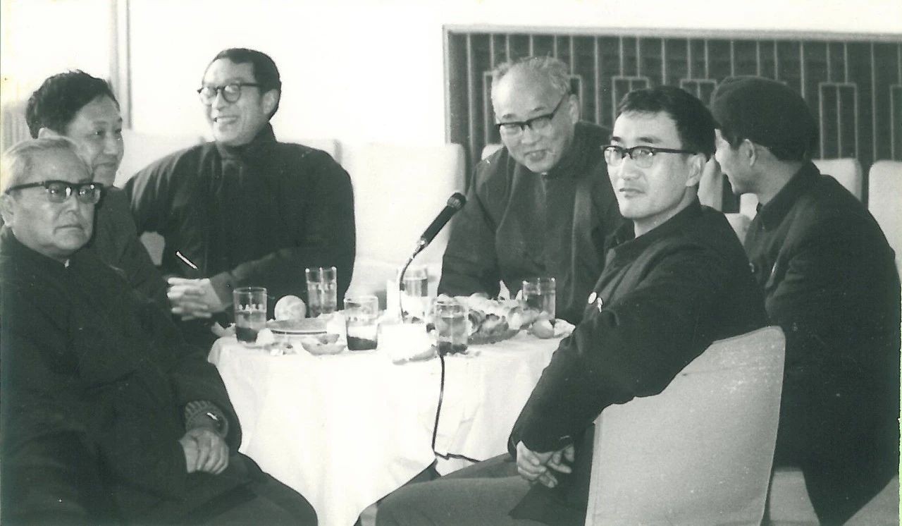 1983年2月,刘佛年(右三)在春节座谈会上