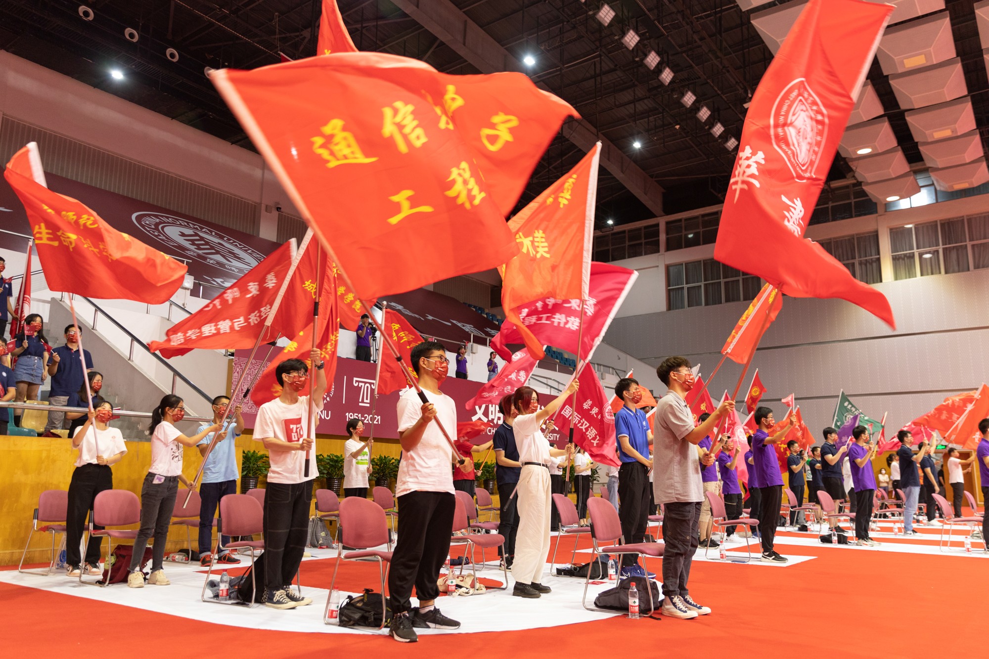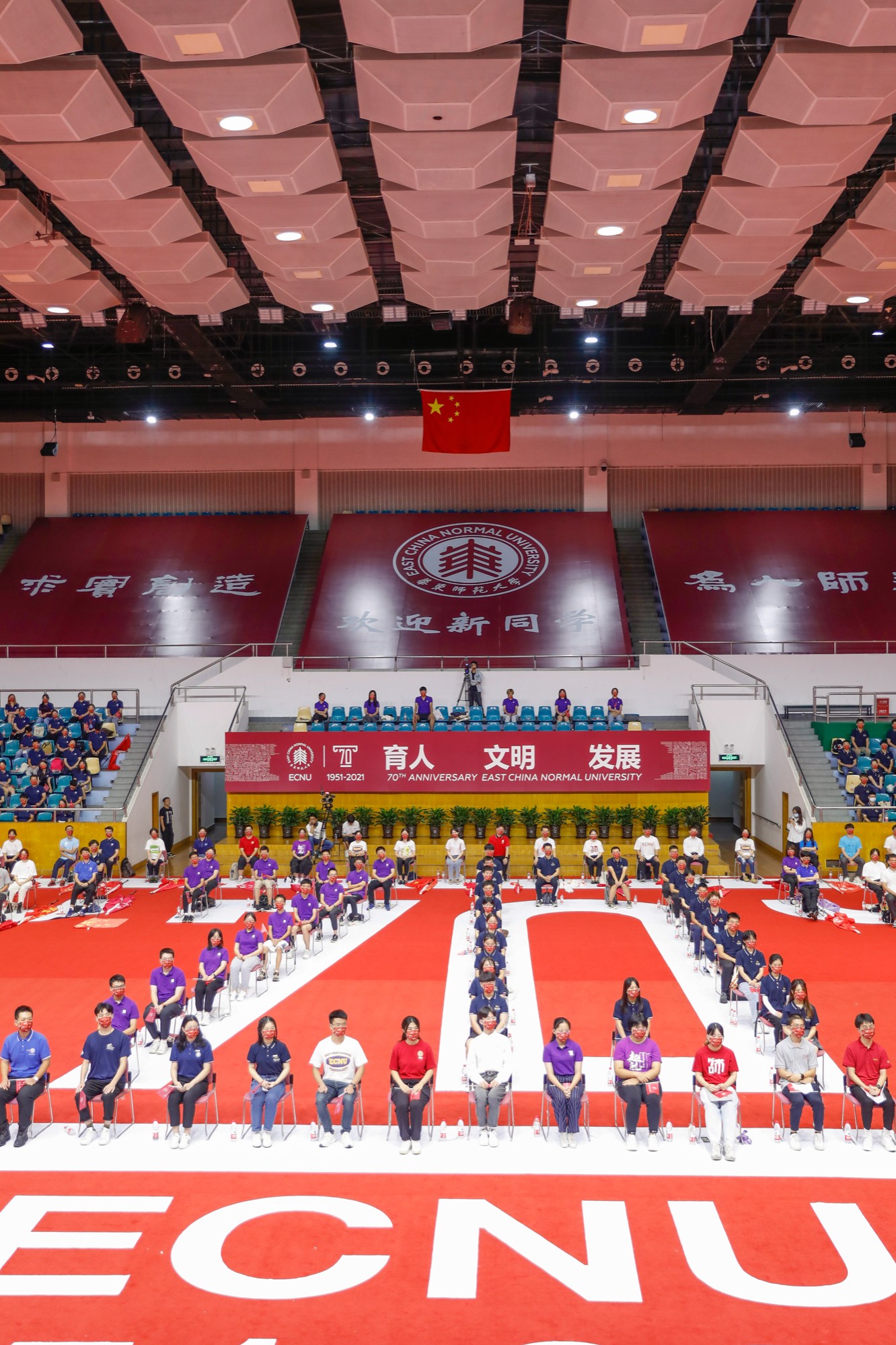 室外,台风带来的风雨依旧淅沥;室内,新一代华东师大人热血昂扬。在中国共产党建党100周年、华东师大建校70周年入学的这届新生,将以“华东师大人”之名,怀揣赤子之心和崇高理想,开启砥砺奋斗的新篇章。
