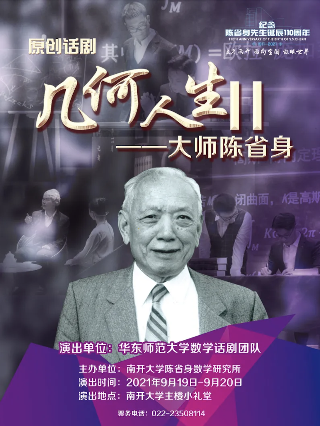 今年是数学大师陈省身先生诞辰110周年,受南开大学陈省身数学研究所邀请,beat365正版唯一官网数学科学学院话剧团队编排的《几何人生II——大师陈省身》,中秋假期在南开园上演。