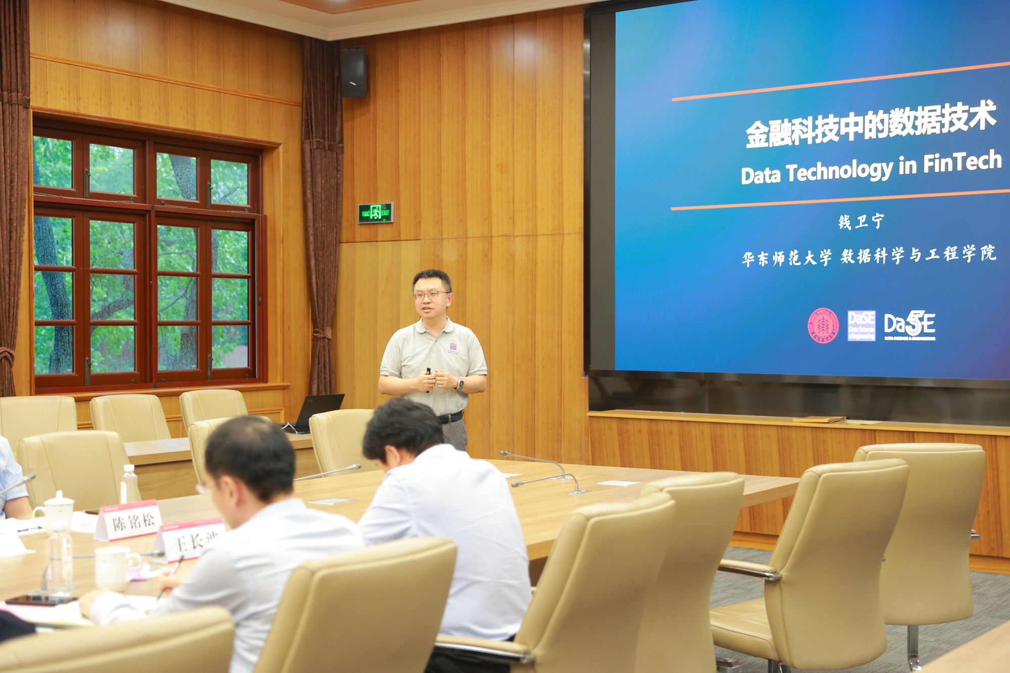 数据科学与工程学院院长钱卫宁作题为“金融科技中的数据技术”的专题学术报告