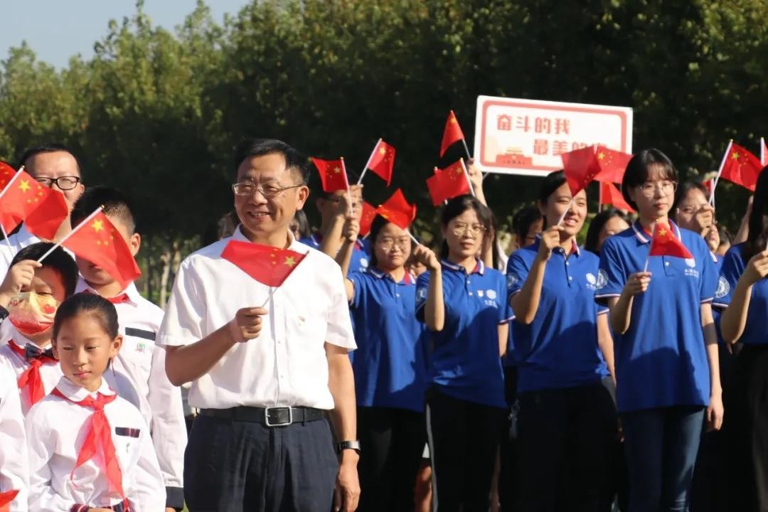 升旗仪式现场,学校还策划推出“我和国旗同框”打卡活动,吸引全校师生与国旗同框合影,为共和国生日、母校七秩华诞送上美好祝福。