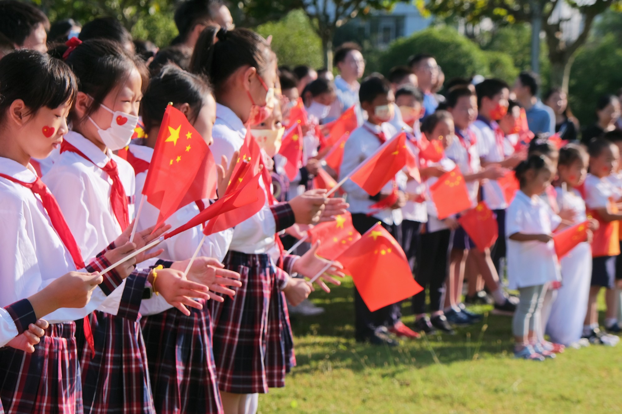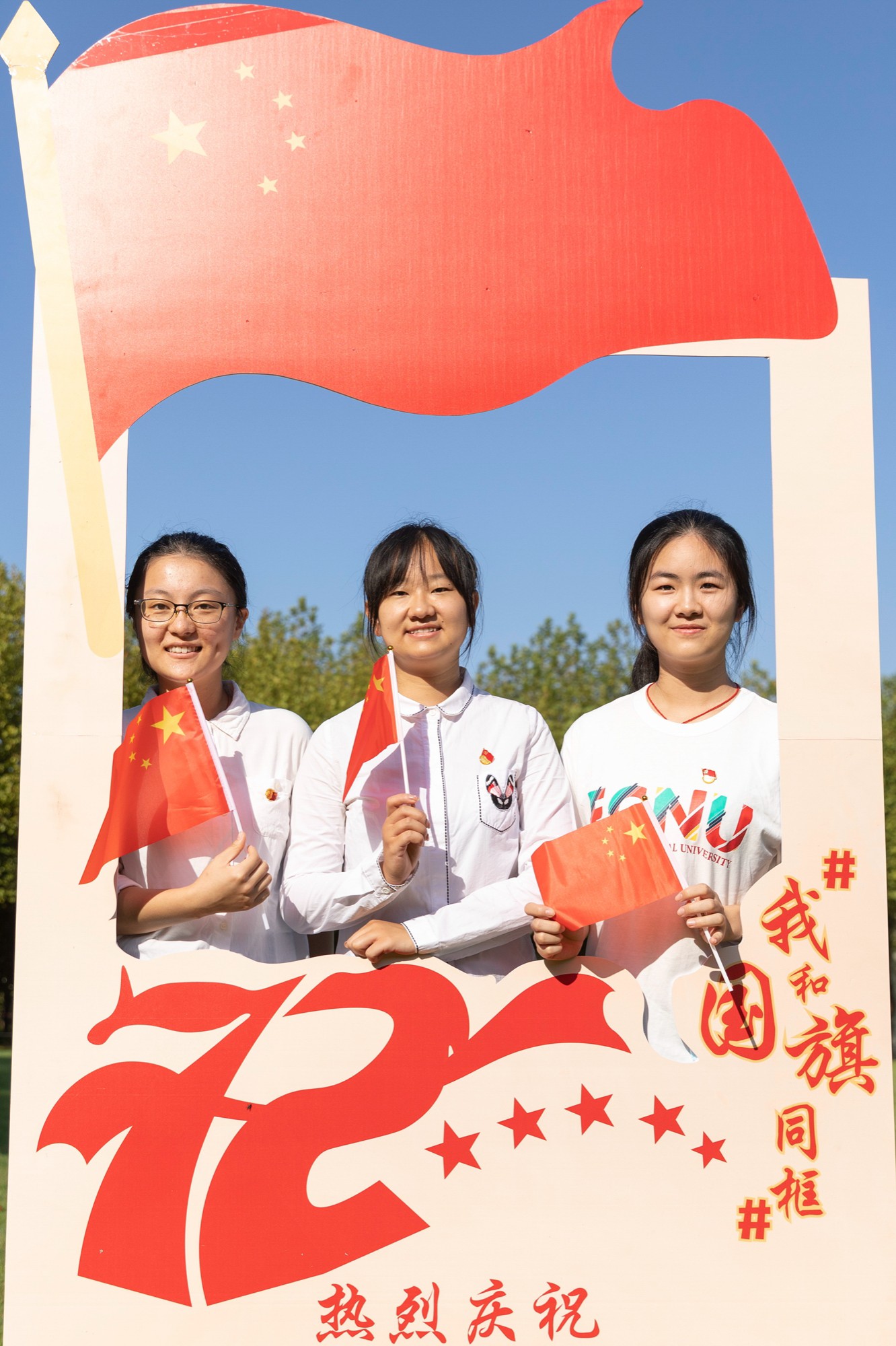 师生与国旗同框合影