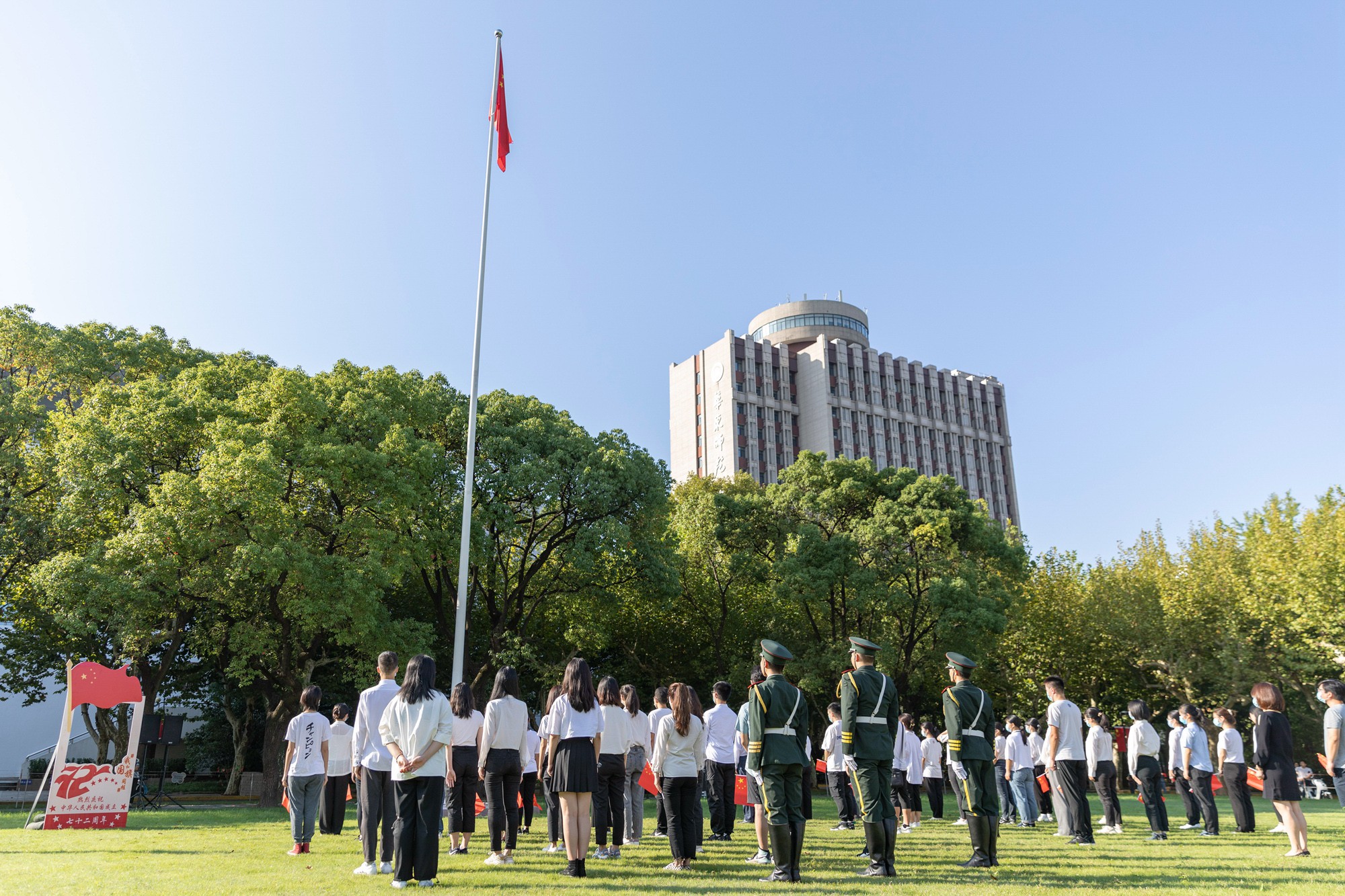 华东师大庆祝新中国成立72周年升旗仪式在两校区同时举行