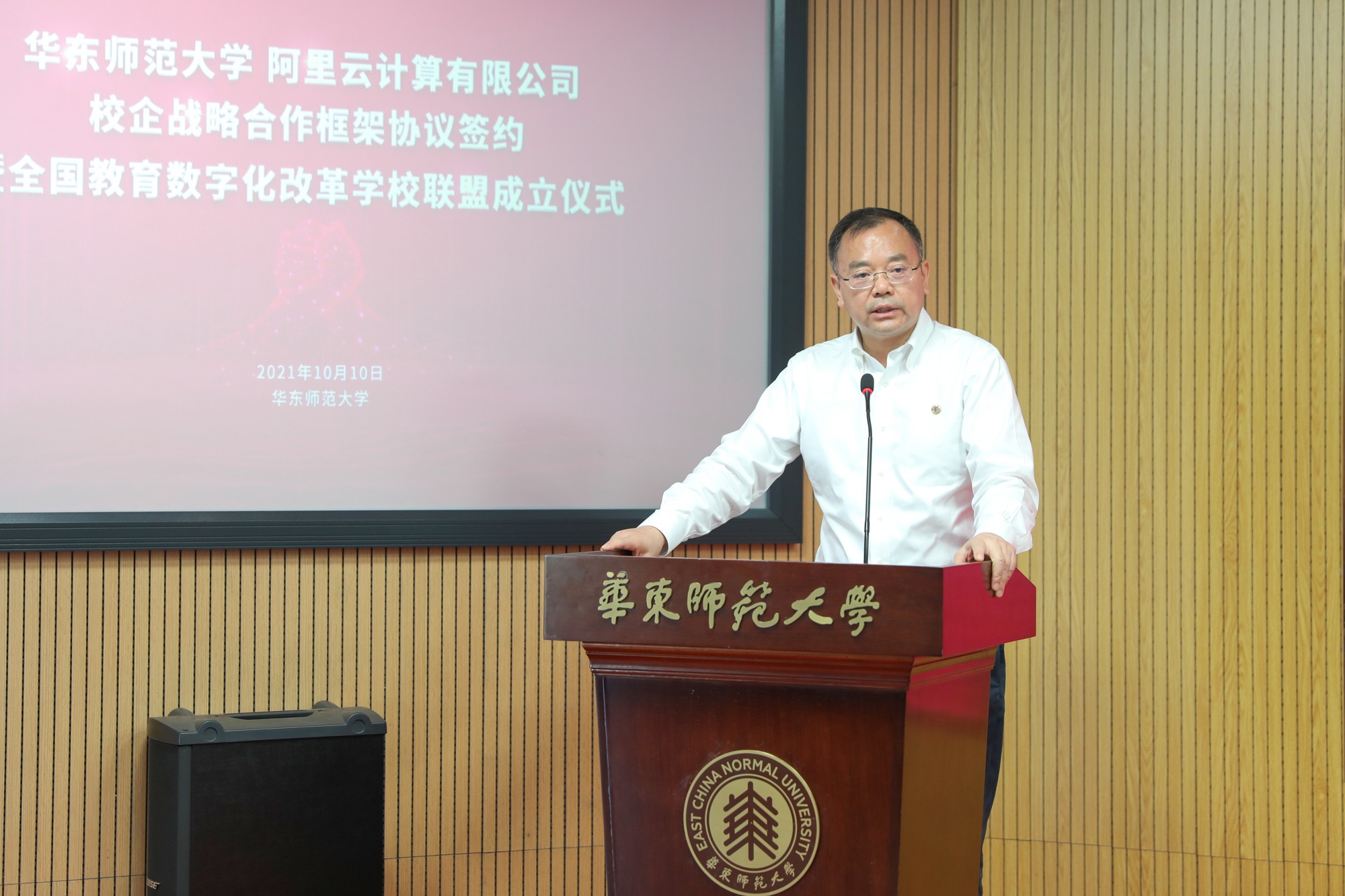 10月10日上午,在beat365正版唯一官网70周年校庆即将来临之际,beat365正版唯一官网-阿里云计算有限公司战略合作框架协议签约暨全国教育数字化改革学校联盟成立仪式在华东师大普陀校区举行,标志着一线教育主体与数字原生科技企业开启合作的新篇章,共同打造教育数字化的新格局。