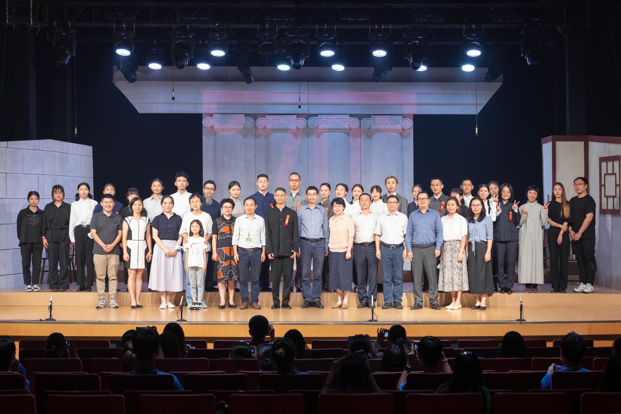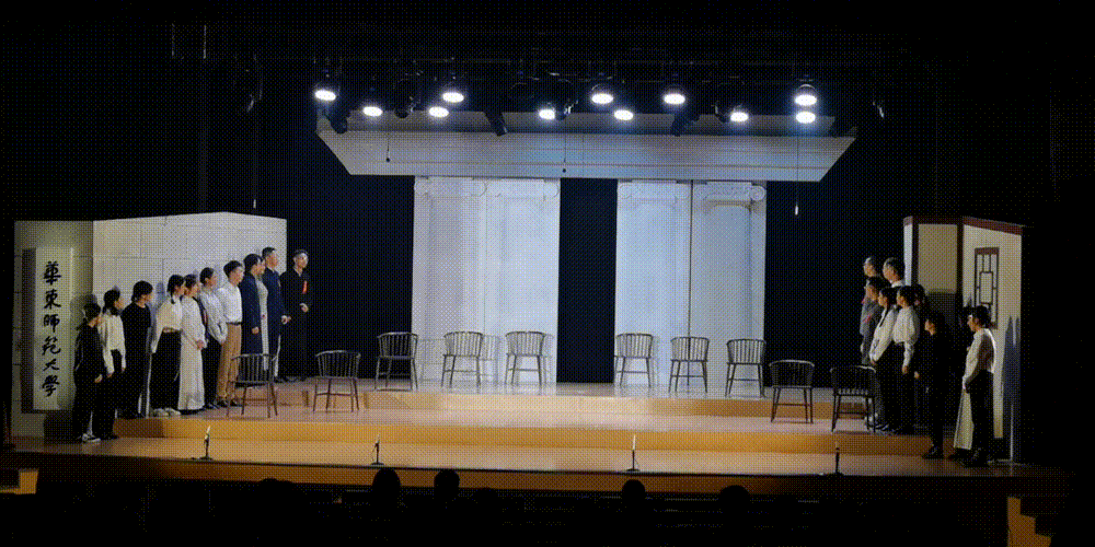 激活校园文化资源,以原创校园大师剧在师生共进、朋辈互促、自我教育的融合中实现润物无声的育人效果,已成为华东师大以文化人、以文育人的新风尚。在编、排、演、观的过程中,传承文脉、弘扬精神、凝聚力量,共祝师大七秩芳华!灯光暗又再次亮起,大师剧《孟宪承》全体演职人员上台谢幕,掌声经久不息!