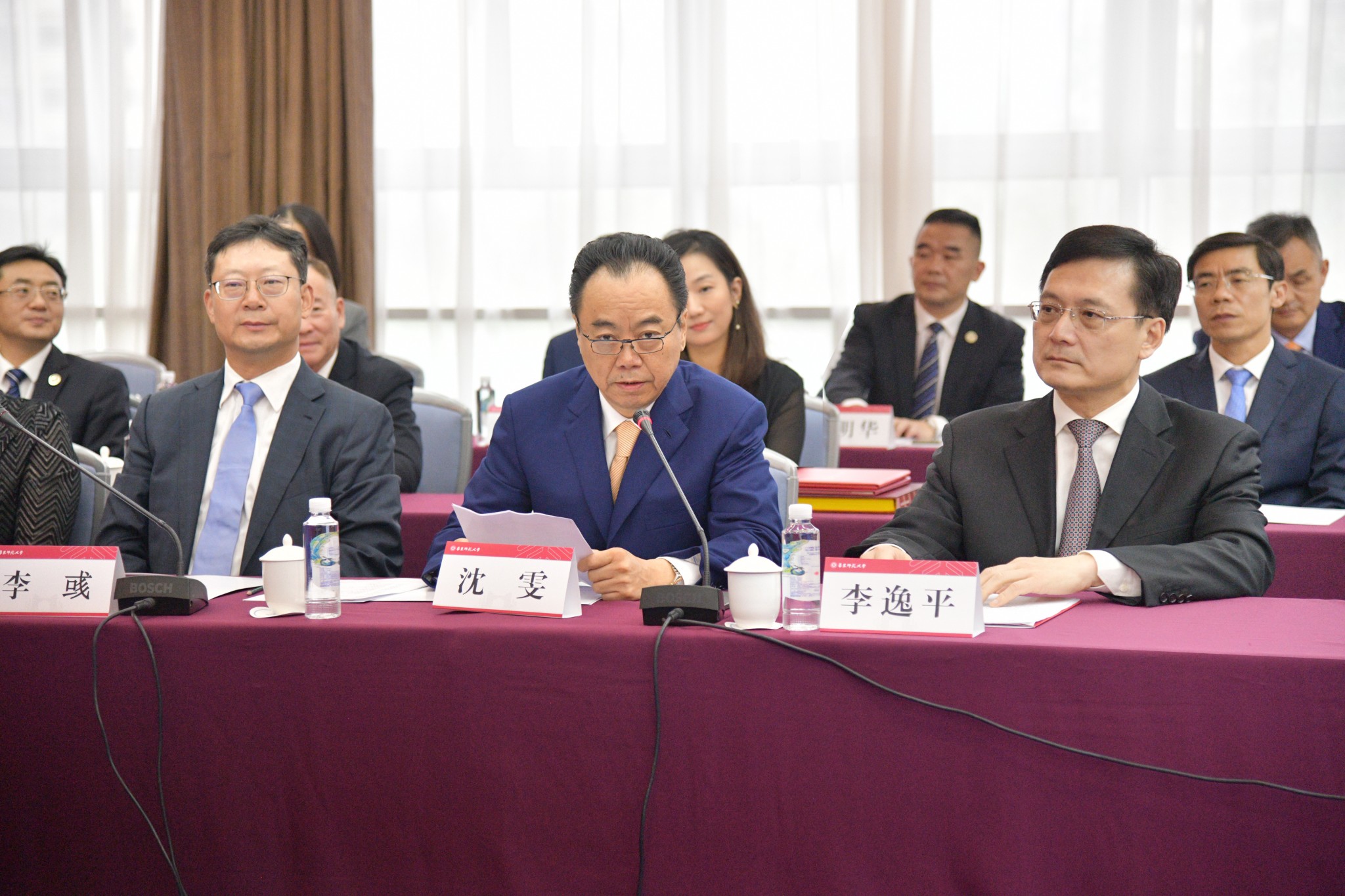 10月12日下午,紫江集团捐赠仪式暨沈雯校董聘任仪式在华东师大闵行校区举行。上海市政协副主席、党组副书记李逸平,闵行区委书记陈宇剑,区委副书记、代理区长陈华文,区委副书记唐劲松,区委常委、副区长候选人赵亮,副区长刘艳,副区长候选人宋延辉;紫江集团董事长沈雯,副总裁李彧,党委书记、副总裁胡兵,副总裁唐继锋;华东师大校长钱旭红,党委副书记、纪委书记曹友谊,副校长周傲英、顾红亮,原党委书记张济顺,原校长王建磐,原校长俞立中,原党委书记童世骏,校长助理斯阳等出席活动。捐赠仪式由顾红亮主持。