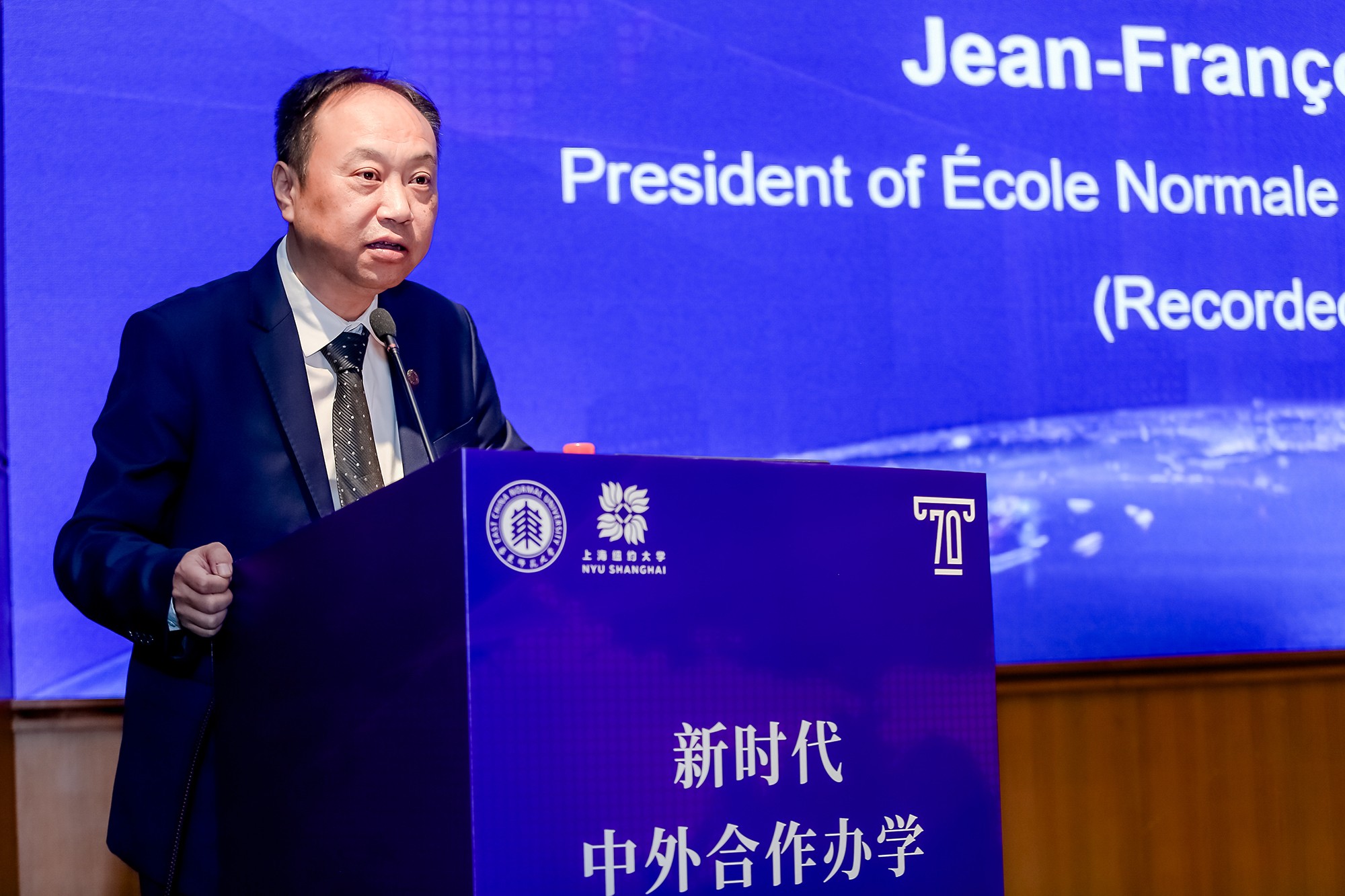 在专题报告环节,香港中文大学(深圳)校长徐扬生院士、法国里昂高等师范学校校长Jean-François PINTON(让-弗朗索瓦 班东)、昆山杜克大学校长冯友梅和美国康涅狄格大学助理外事副校长Yuhang RONG(荣宇航)校友,分别以《书院制与国际化人才培养》、《卓越人才培养的国际合作实践与经验》、《坚守教育初心培养卓越人才》和《全球伙伴关系建设的四个维度:以学生为中心、多学科、包容和透明》为题,介绍了各校独具办学优势的卓越育人特色,多维度分享了国际化人才培养经验,提出了紧跟时代前沿的中外合作办学新理念。专题报告分别由华东师大副校长戴立益、周傲英主持。