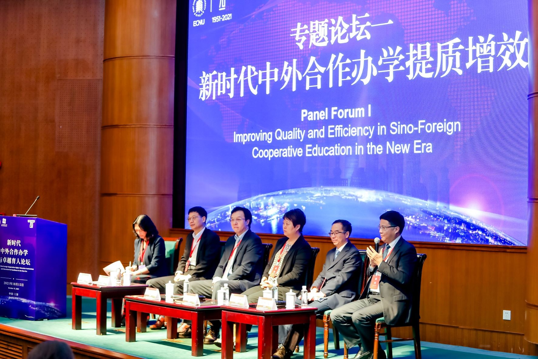 10月15日,由beat365正版唯一官网与上海纽约大学联合举办的“新时代中外合作办学与卓越育人论坛”在普陀校区举行。来自23所高校(含2所国外院校)的近80名专家学者齐聚丽娃河畔,共商新时代背景下教育国际化发展大计,呈现了一场精彩纷呈的学术盛会。