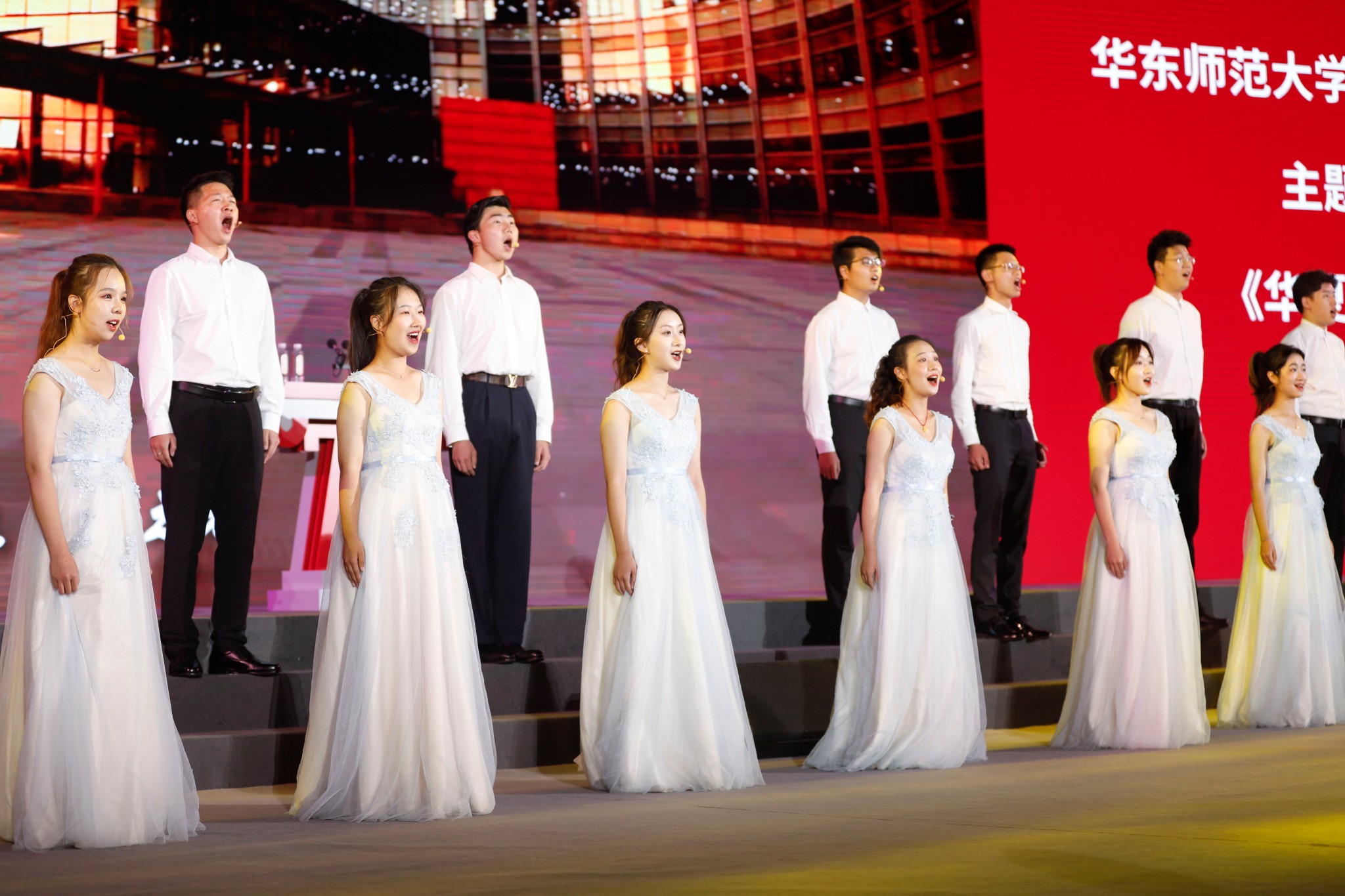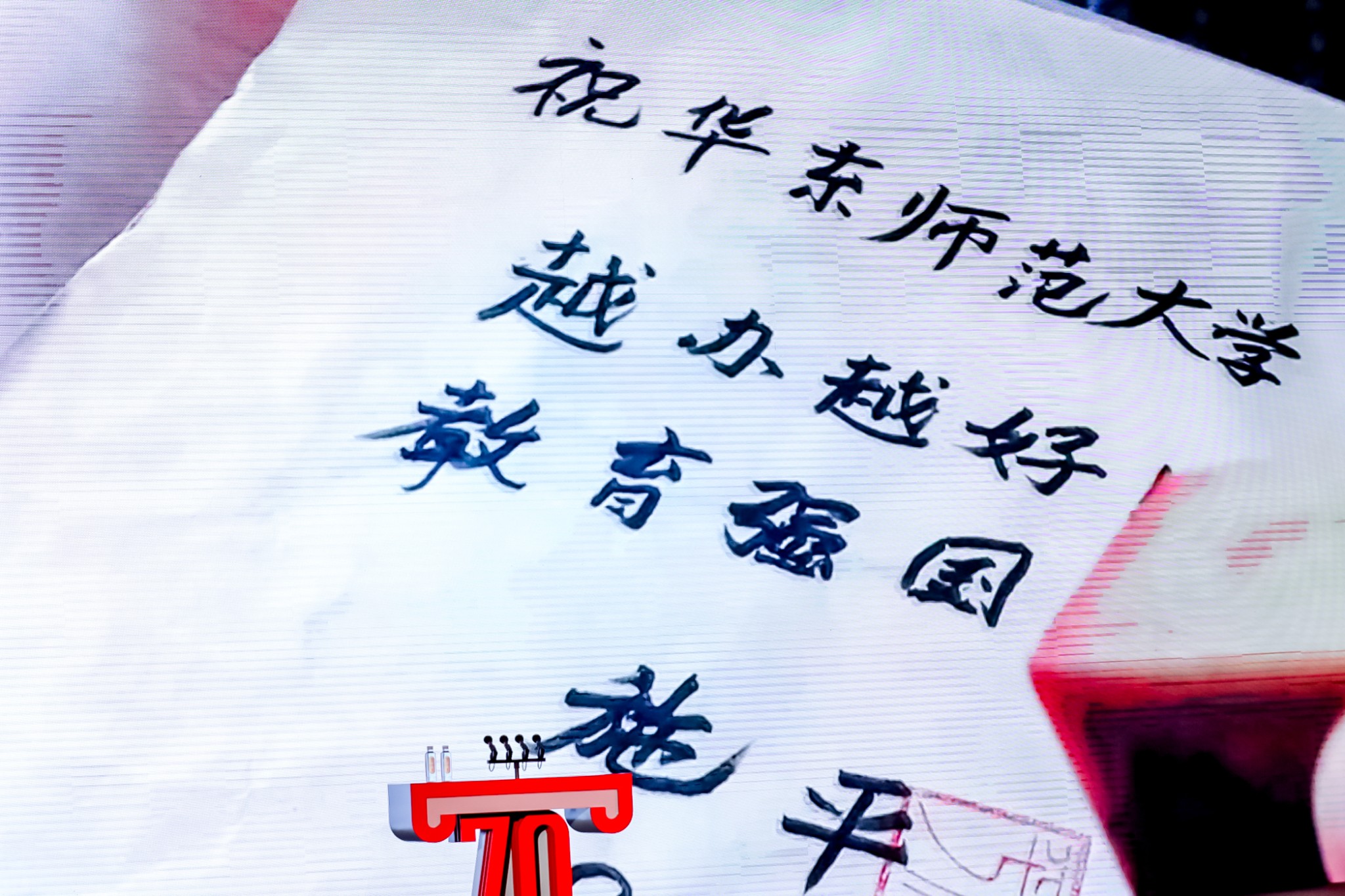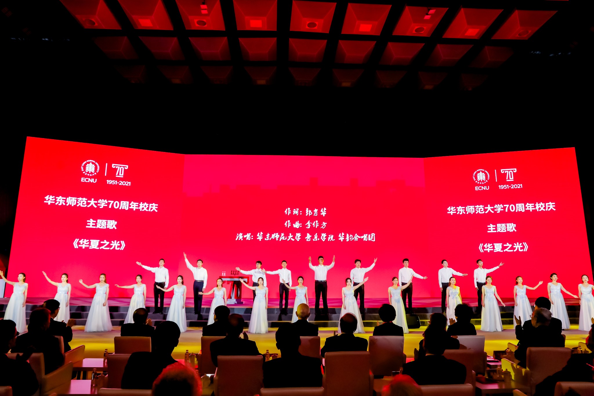 随后,师生代表为70周年校庆献词。师生们用铿锵有力的声音、饱含深情的朗诵,向华东师大表达了最深沉的热爱和祝愿。