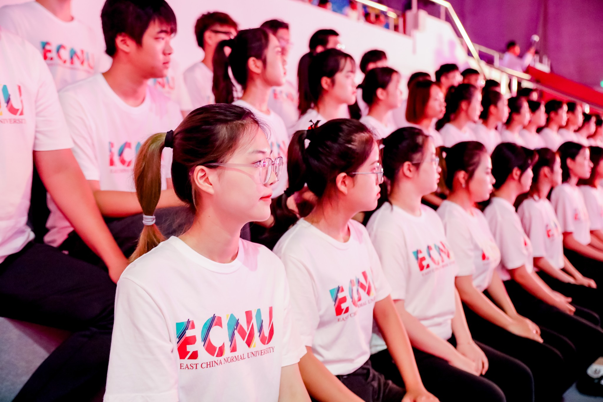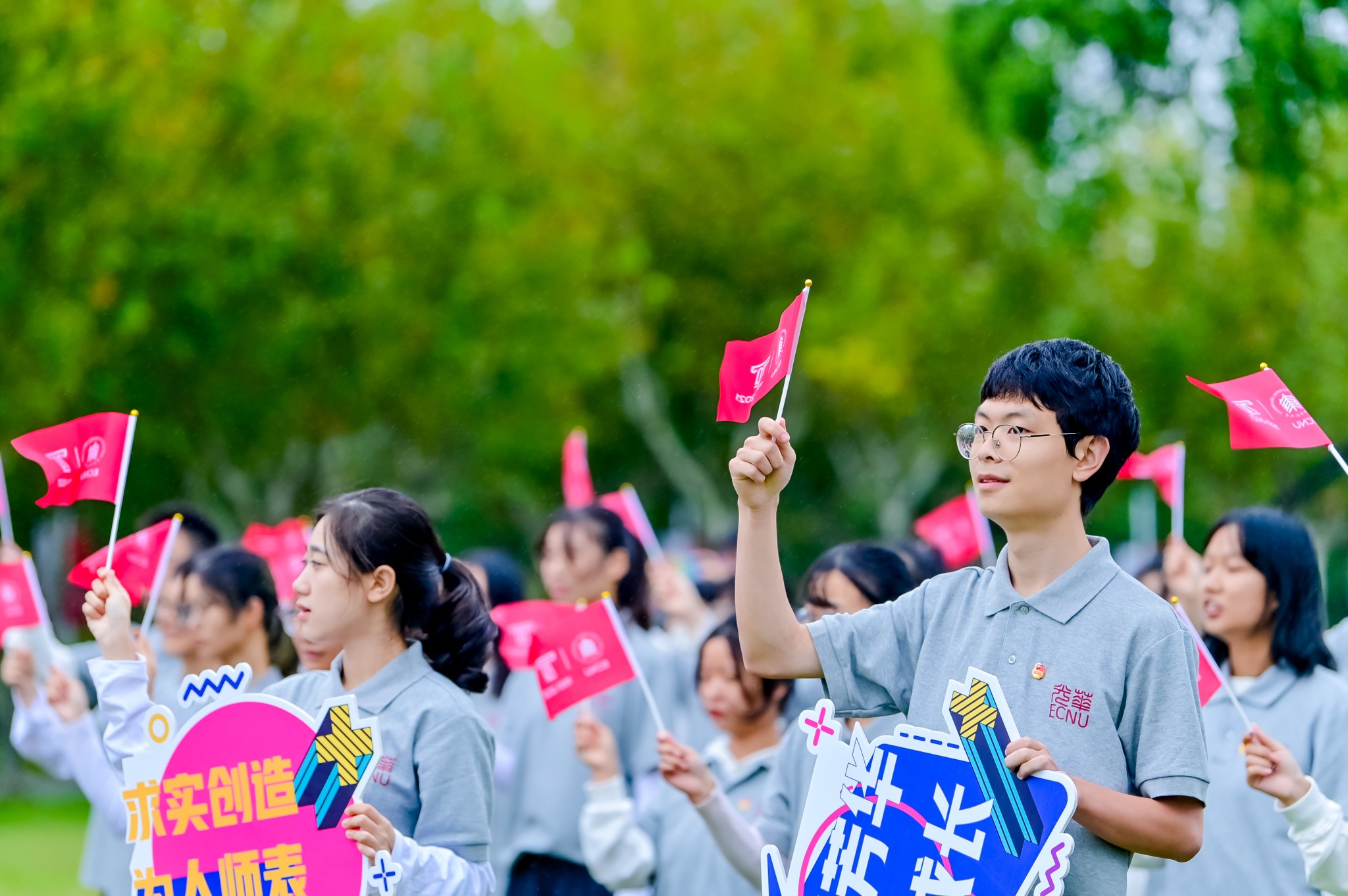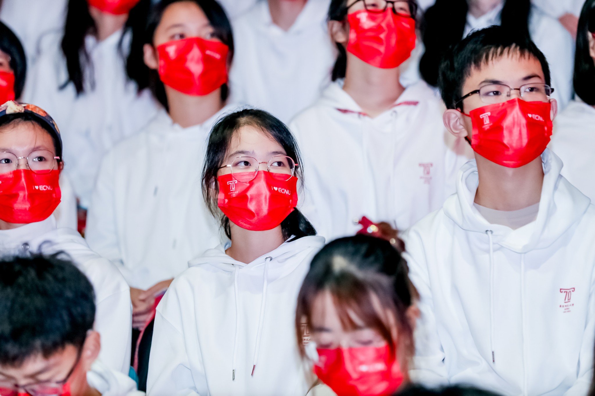 随后,师生代表为70周年校庆献词。师生们用铿锵有力的声音、饱含深情的朗诵,向华东师大表达了最深沉的热爱和祝愿。