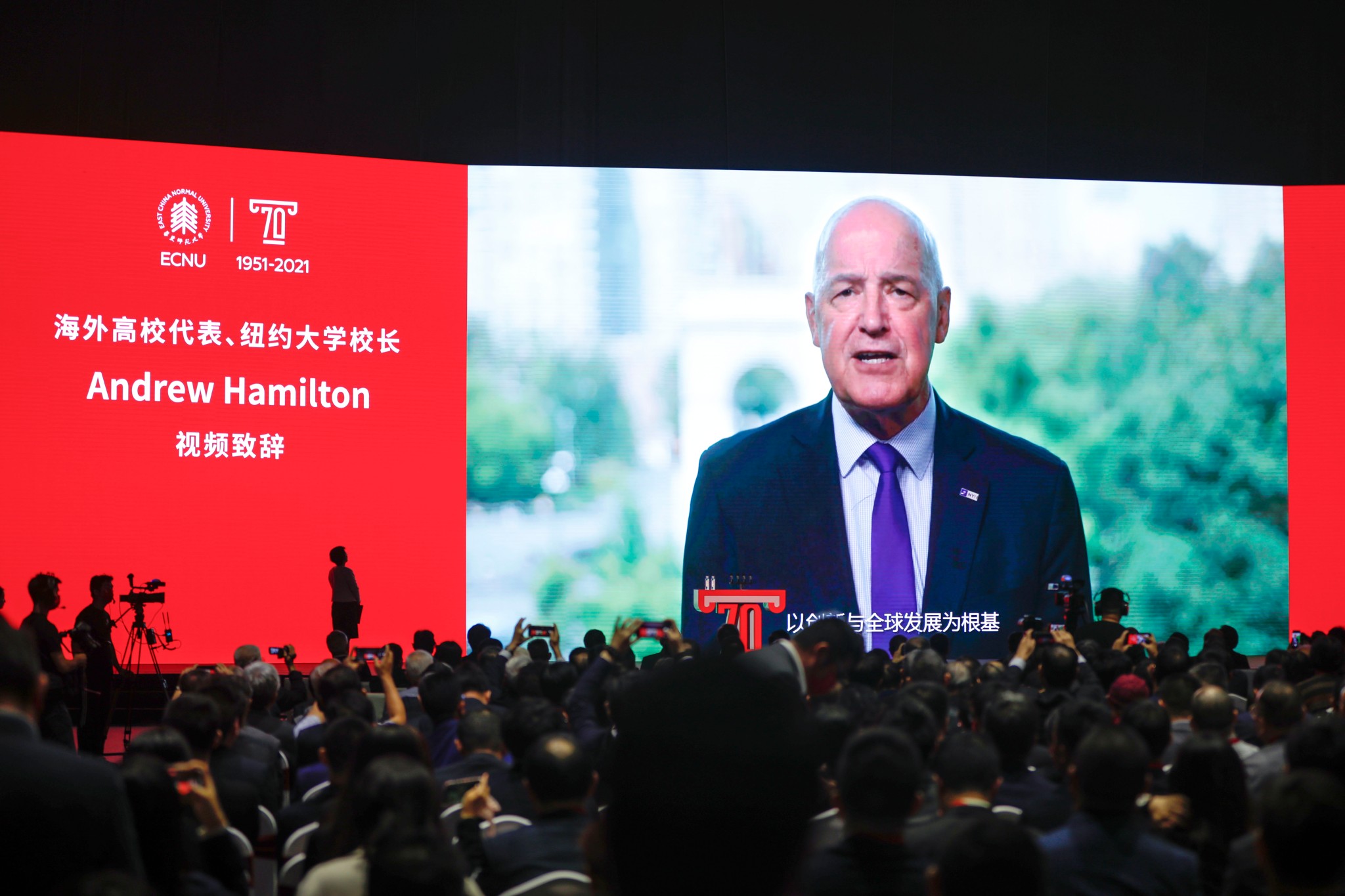 纽约大学校长安德鲁·汉密尔顿(Andrew Hamilton)代表海外合作高校表达祝贺