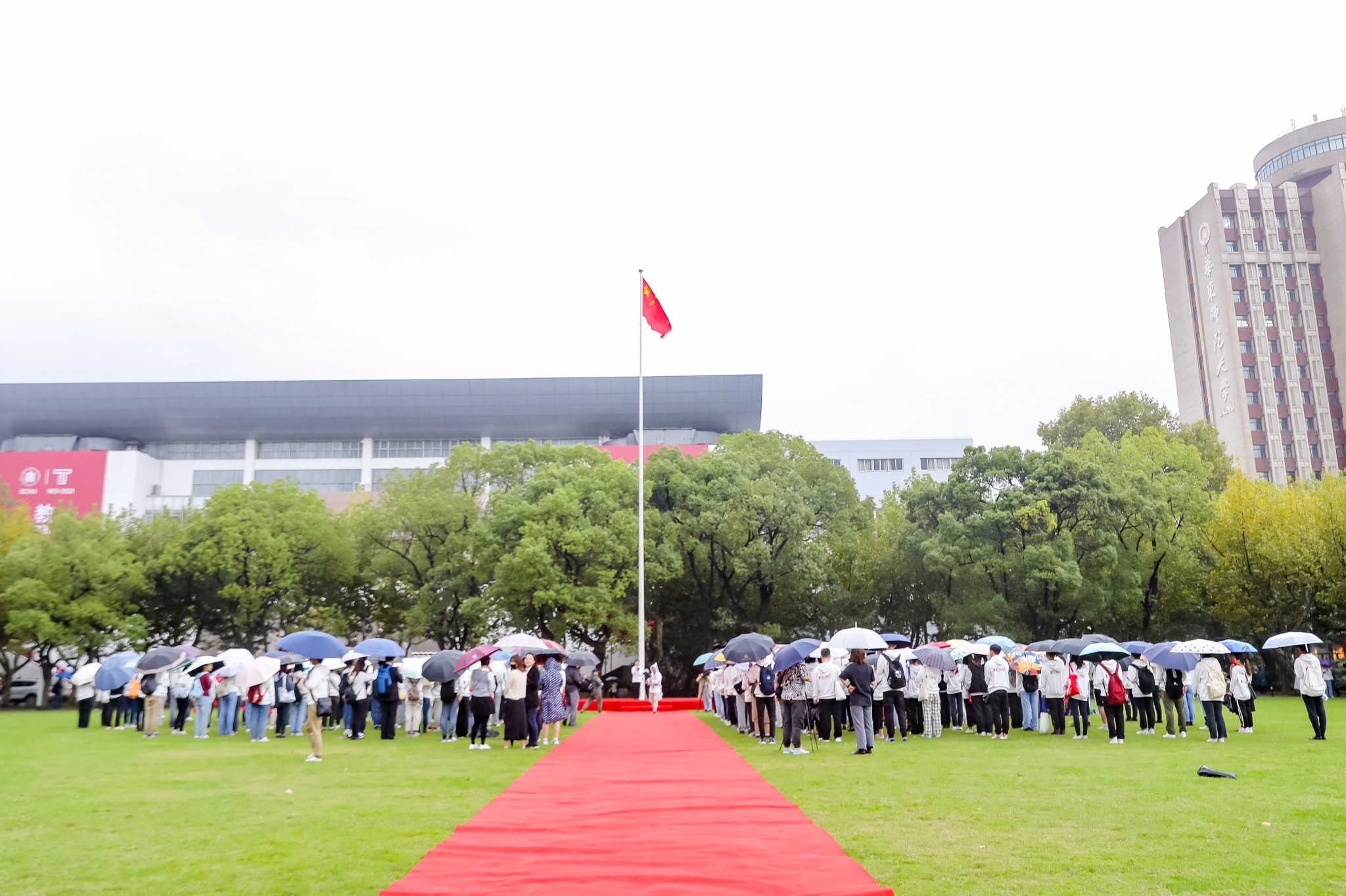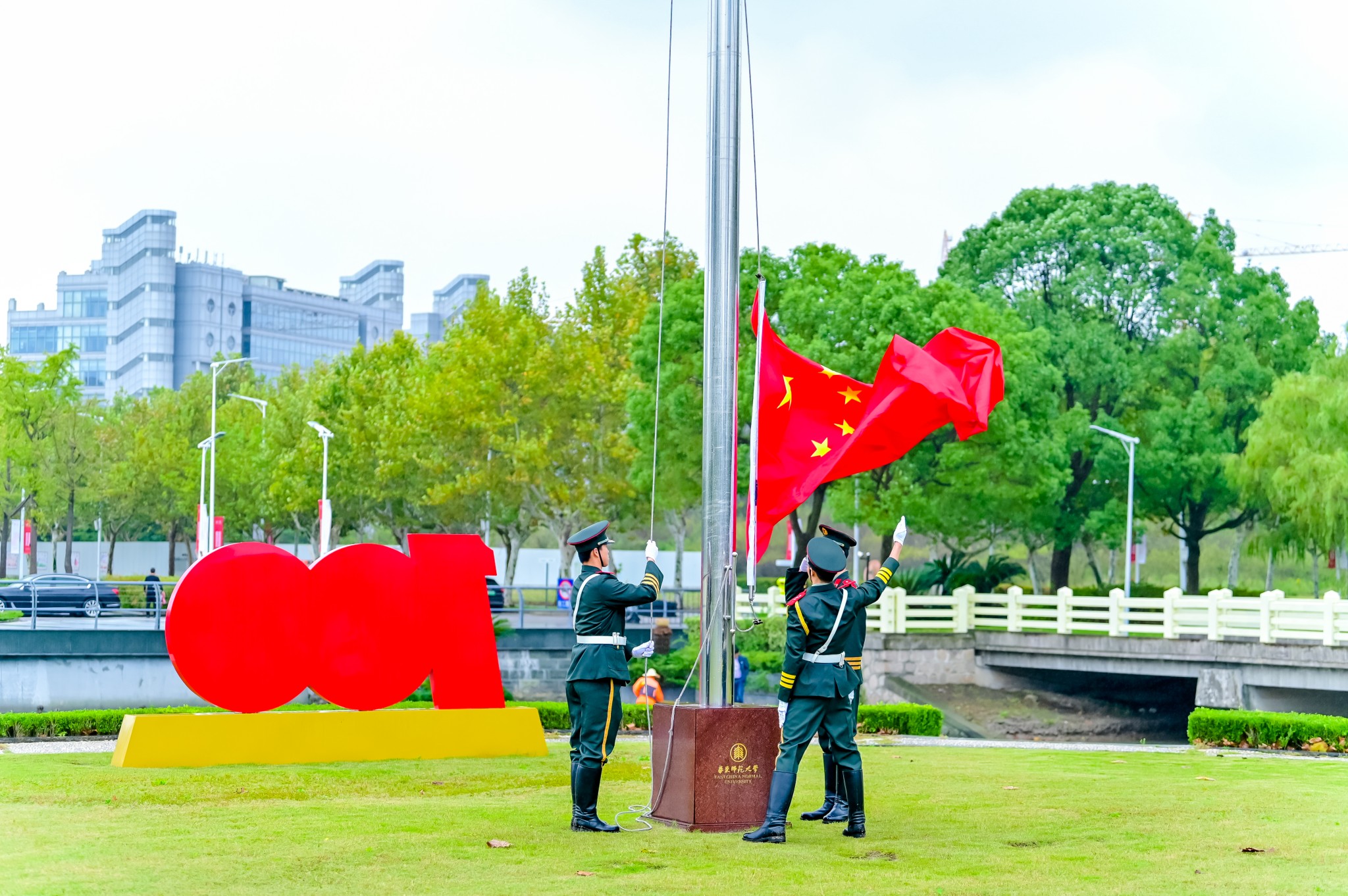 10月16日,华东师大迎来70周年校庆,两校区举行升旗仪式