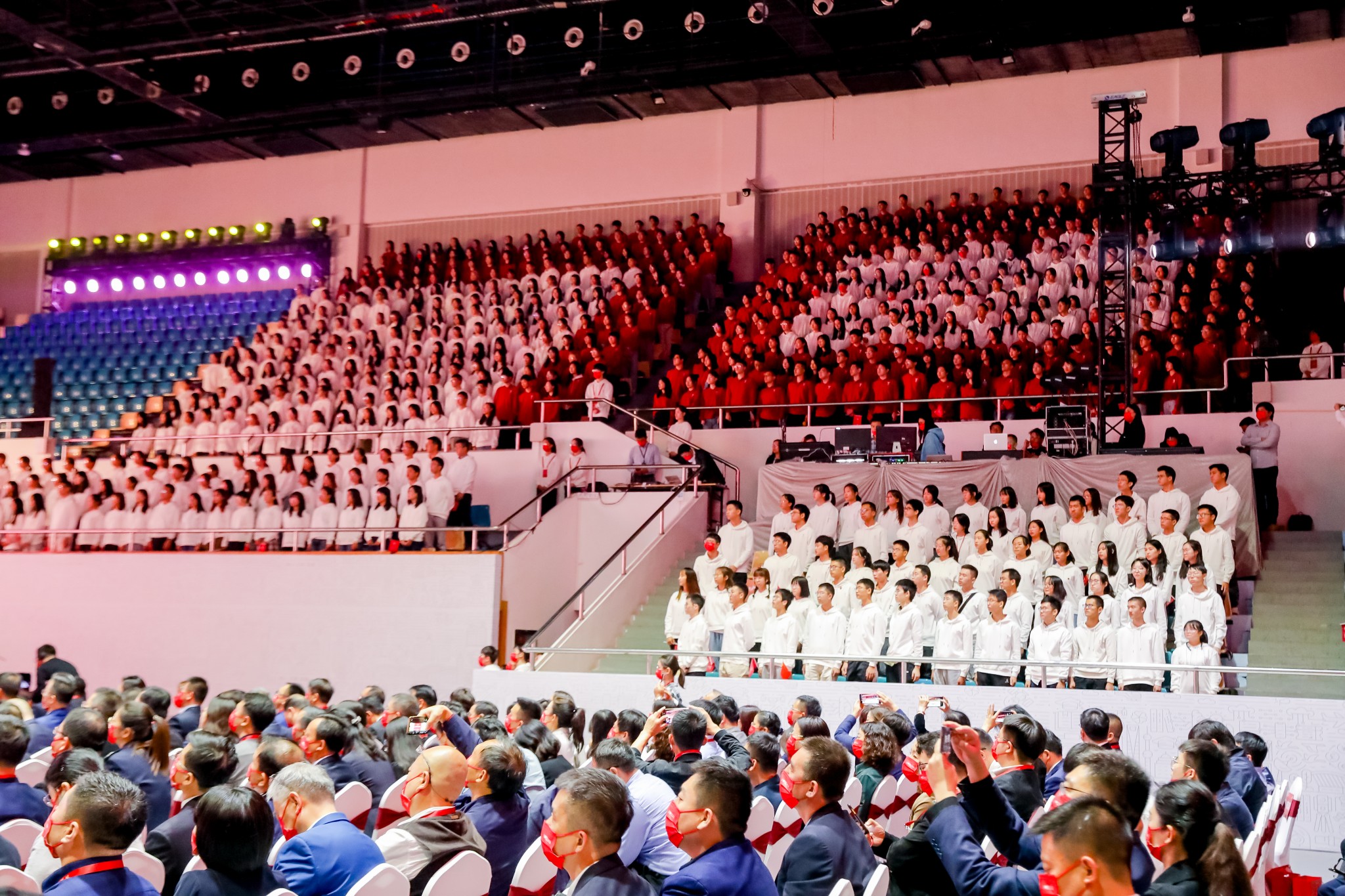 “校庆既是温暖奋进,为学校下一阶段发展凝聚人心、集聚资源、提供动力的活动,又是一堂激励全校师生勇于进取不断前行的大思政课。”大会由华东师大党委书记梅兵主持。