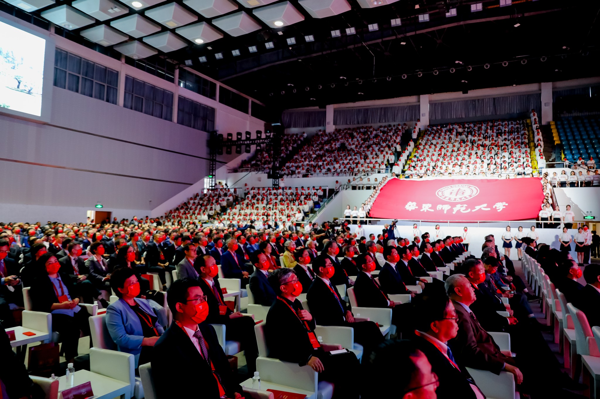 全国人大教科文卫委员会副主任委员殷一璀,上海市人大常委会原主任刘云耕,教育部党组成员、副部长翁铁慧,上海市副市长、民盟中央副主席、上海市委主委陈群,上海市政协副主席、致公党中央副主席、上海市委主委张恩迪,上海交通大学校长、中国工程院院士林忠钦,上海科技大学校长江绵恒,中共中央党校原副校长李君如,云南省政协原副主席罗黎辉,上海市委原常委、秘书长范德官,全国工商联原副主席、上海市政协原副主席王新奎,上海市人大常委会原副主任王培生,上海市人大常委会原副主任、副市长胡延照,上海市人大常委会原副主任杨定华,上海市原副市长张学兵,中国科学院匡定波院士、童庆禧院士、薛永祺院士、何积丰院士、褚君浩院士、朱诗尧院士、韩布兴院士、李林院士、席南华院士,中国工程院彭寿院士等领导、嘉宾和校友,以及国家部委和上海市有关部门领导,国内外兄弟高校和科研院所代表,中国银行、紫江集团、江西上饶、云南寻甸、丽江师专等战略合作伙伴代表,学校发展咨询委员会委员代表,学校老领导张瑞琨、方小兰、张济顺、王建磐、俞立中、童世骏等,现任校领导,师生代表,附属学校代表,各地校友会代表,奋斗在全国基层一线的校友代表等出席大会。