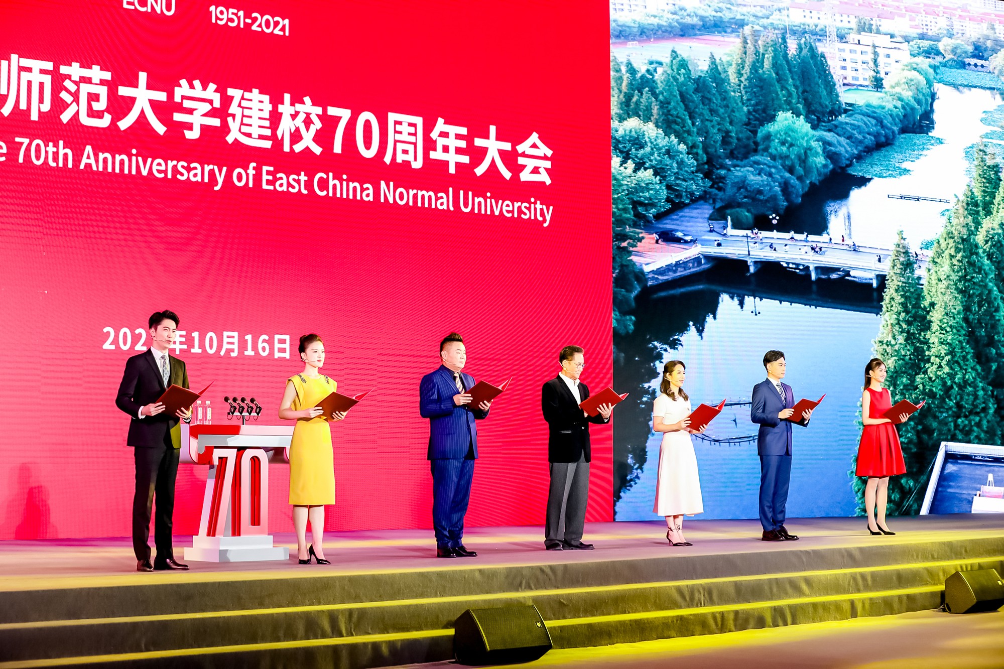 春华秋实结硕果,群贤荟萃谱华章。10月16日,庆祝beat365正版唯一官网建校70周年大会在普陀校区体育馆隆重举行。各级领导、嘉宾、海内外校友和全体师生员工线上线下欢聚互动,庆祝这所新中国成立后新组建的第一所社会主义师范大学建校70周年。