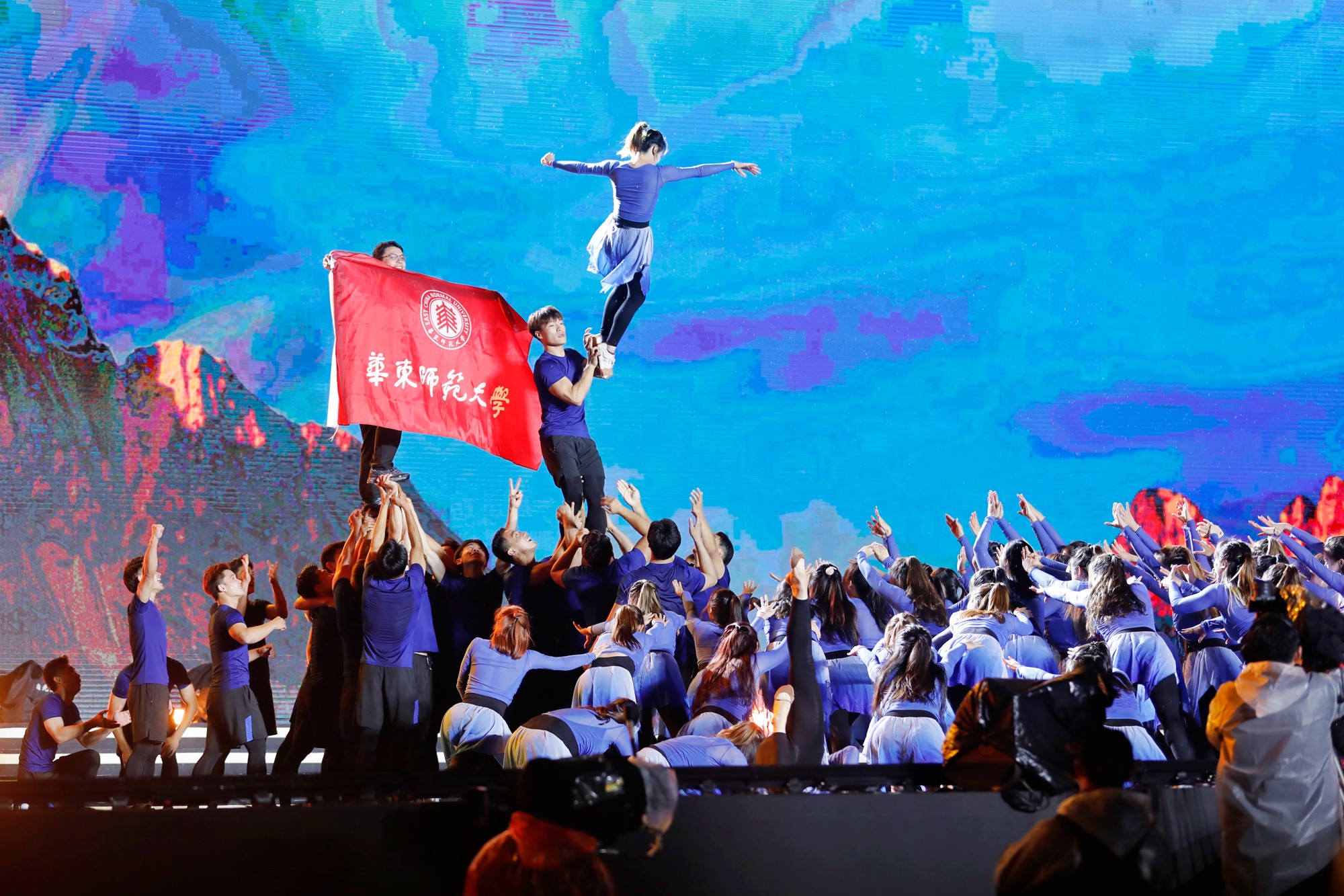华东师大立德树人、因材施教,实现梦想的方式有无限可能。“王者之师”、华东师大全明星健美操啦啦操队表演《攀高行远》致敬将论文写在祖国大地上的华东师大科研工作者。