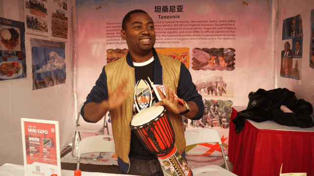 舞台上、展位间,中外学生们一起载歌载舞,观众们也随着韵律舞动起来。“中外一家,携手同行”,迷你博览会充分彰显了华东师大多元文化的魅力与氛围。