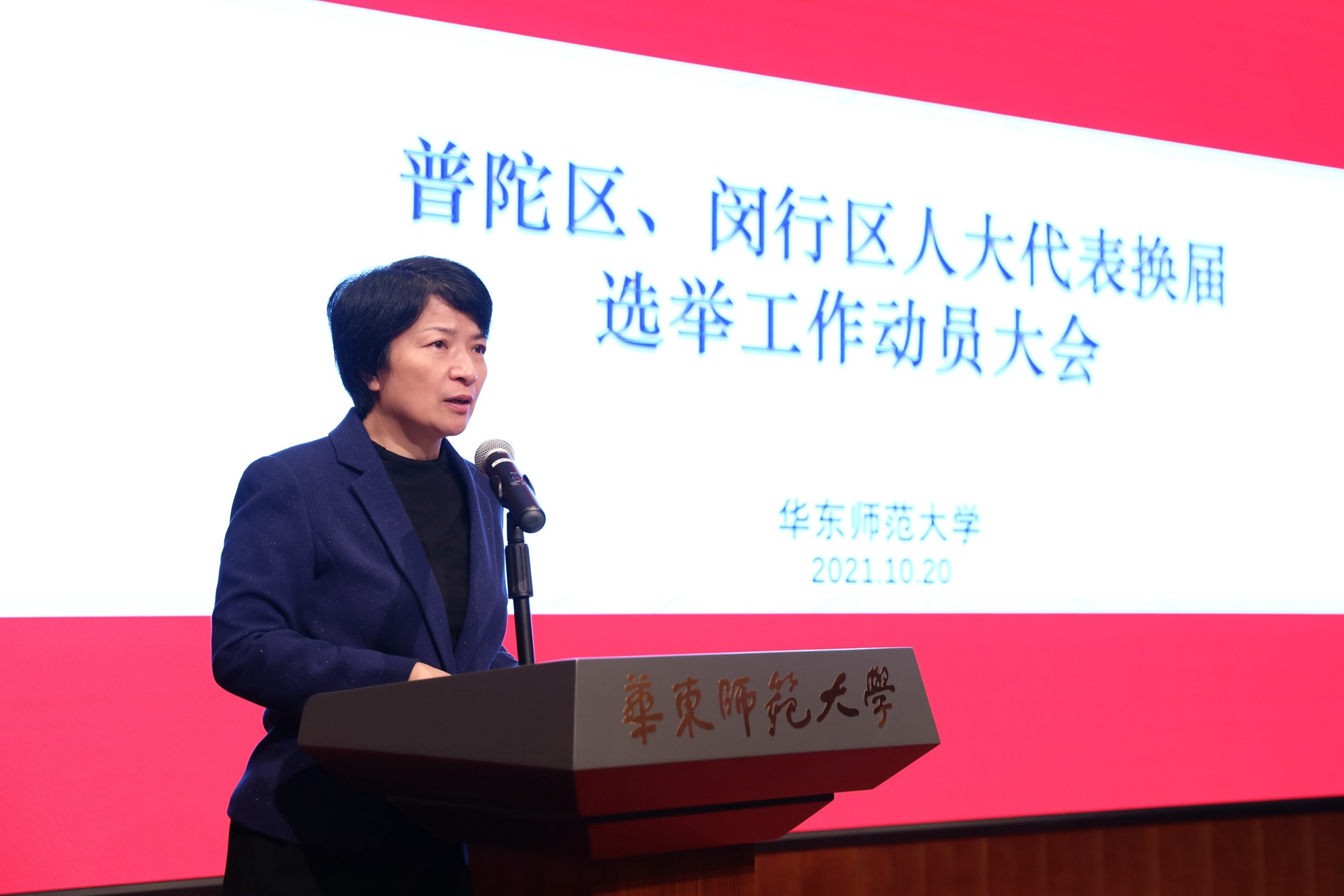 梅兵在动员讲话中表示,人大代表换届选举工作是华东师大师生政治生活中的一件大事。她对切实做好此次区人大代表选举工作提出三点要求:一是充分认识这次区人大换届选举工作的重要意义,切实增强工作责任感和使命感。梅兵指出,人大代表换届选举工作的政治性、法律性、政策性、程序性都很强,习近平总书记近日在中央人大工作会议上发表重要讲话,强调了“不断发展全过程人民民主”,推进社会主义民主政治建设,对具体地、现实地践行全过程人民民主提出了明确要求。二是认真把握区人大换届选举工作的基本原则,确保换届选举工作的正确方向,让换届选举过程成为坚持党的领导、坚持发扬民主、严格依法办事有机统一的具体体现。三是抓好区人大换届选举工作重点环节,确保选举工作圆满完成。要严格把握人选素质条件,认真落实“三上三下”提名推荐工作,严格落实疫情防控相关措施,切实做好11月16日选举日的投票选举工作。梅兵强调指出,这次区人大代表选举工作时间紧,任务艰巨、责任重大。希望各单位从全局和战略的高度认识和把握这项工作的重要意义,进一步增强责任心和使命感,以良好的精神状态,把握政策,周密部署,精心组织,统筹安排,切实抓好各项任务的落实,确保这次选举工作依法有序,顺利完成。