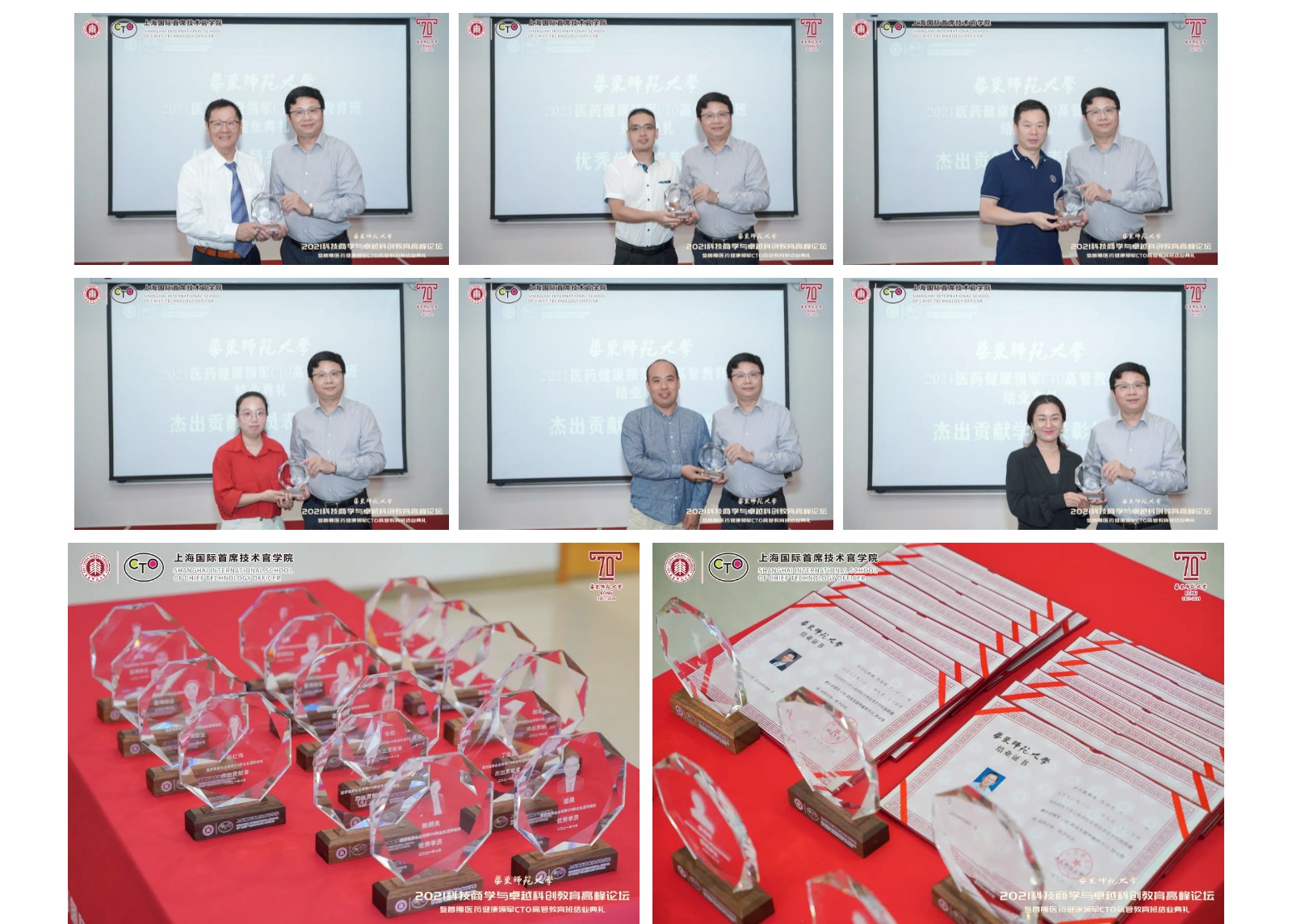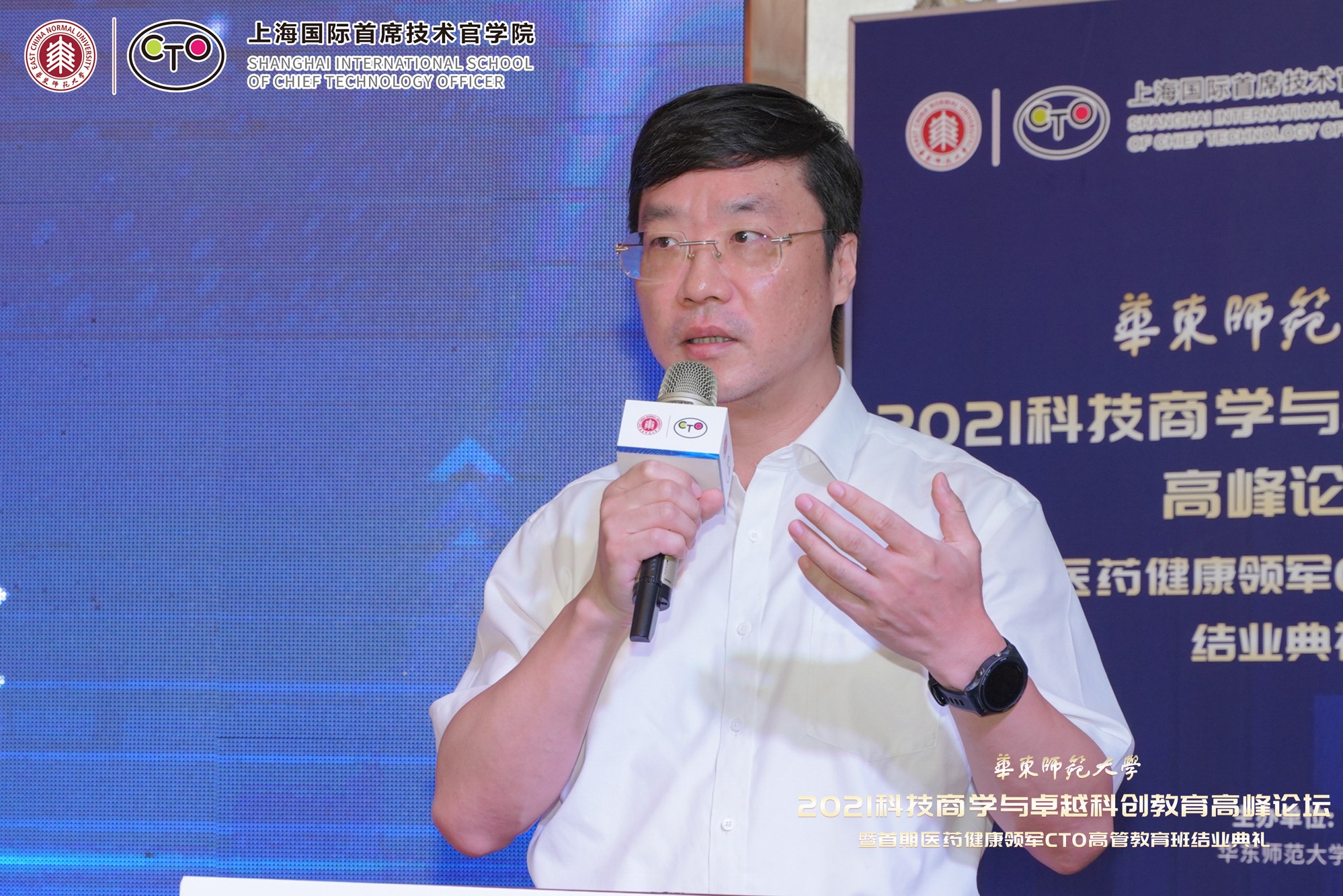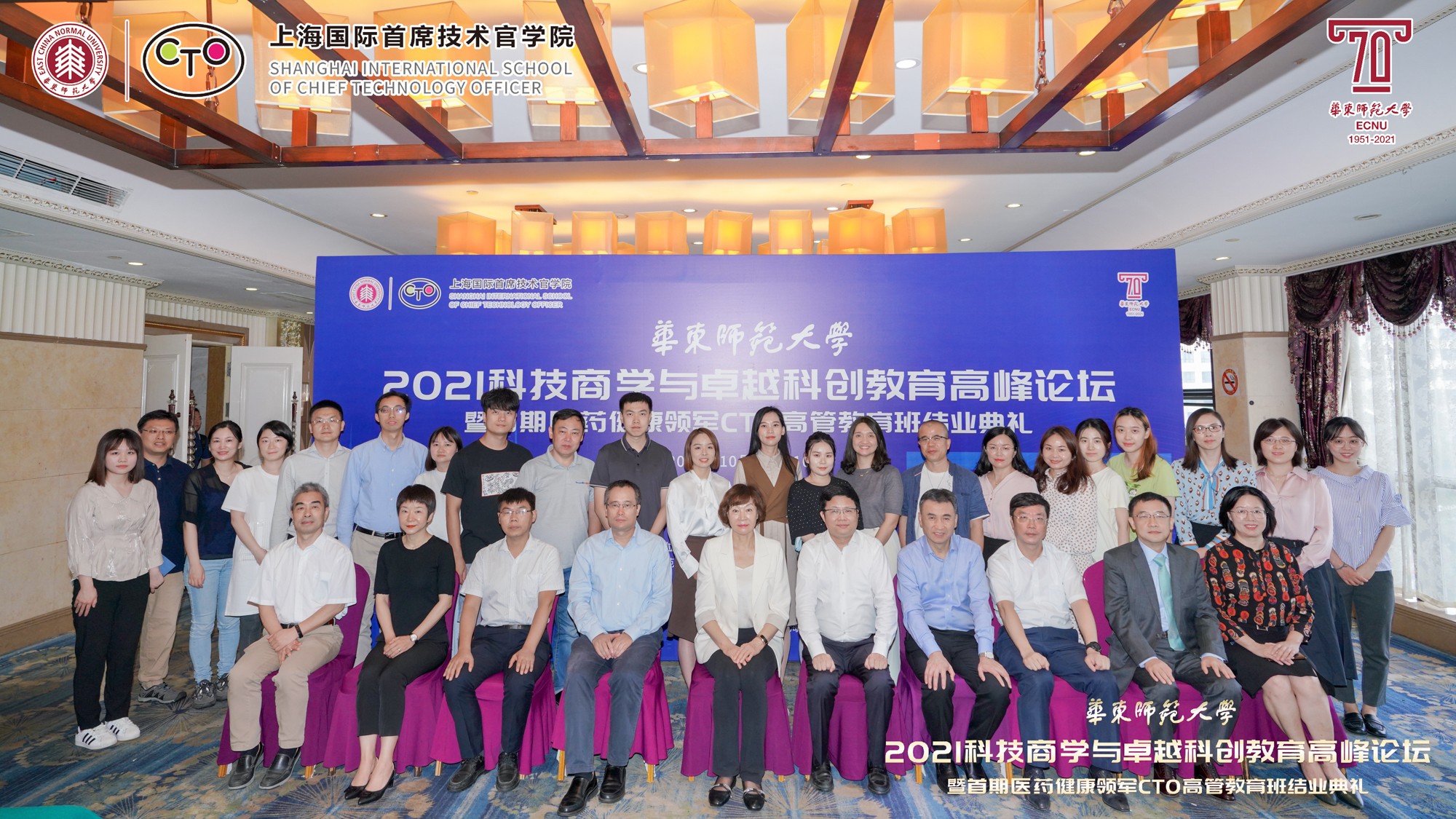 10月9日至10日,在beat365正版唯一官网即将迎来七十华诞之际,由华东师大主办、上海国际首席技术官学院(以下简称“CTO学院”)承办、华东师大科技处指导的“2021科技商学与卓越科创教育高峰论坛暨首期医药健康领军CTO高管教育班结业典礼”举行。本次论坛得到上海市闵行区科委、上海紫竹高新区(集团)有限公司、上海市漕河泾新兴技术开发区发展总公司、上海临港漕河泾人才有限公司、上海中以创新促进中心、华东师大产业技术研究院、创新创业学院、亚欧商学院、转化科学与技术联合研究院、华东师大国家大学科技园的大力支持。