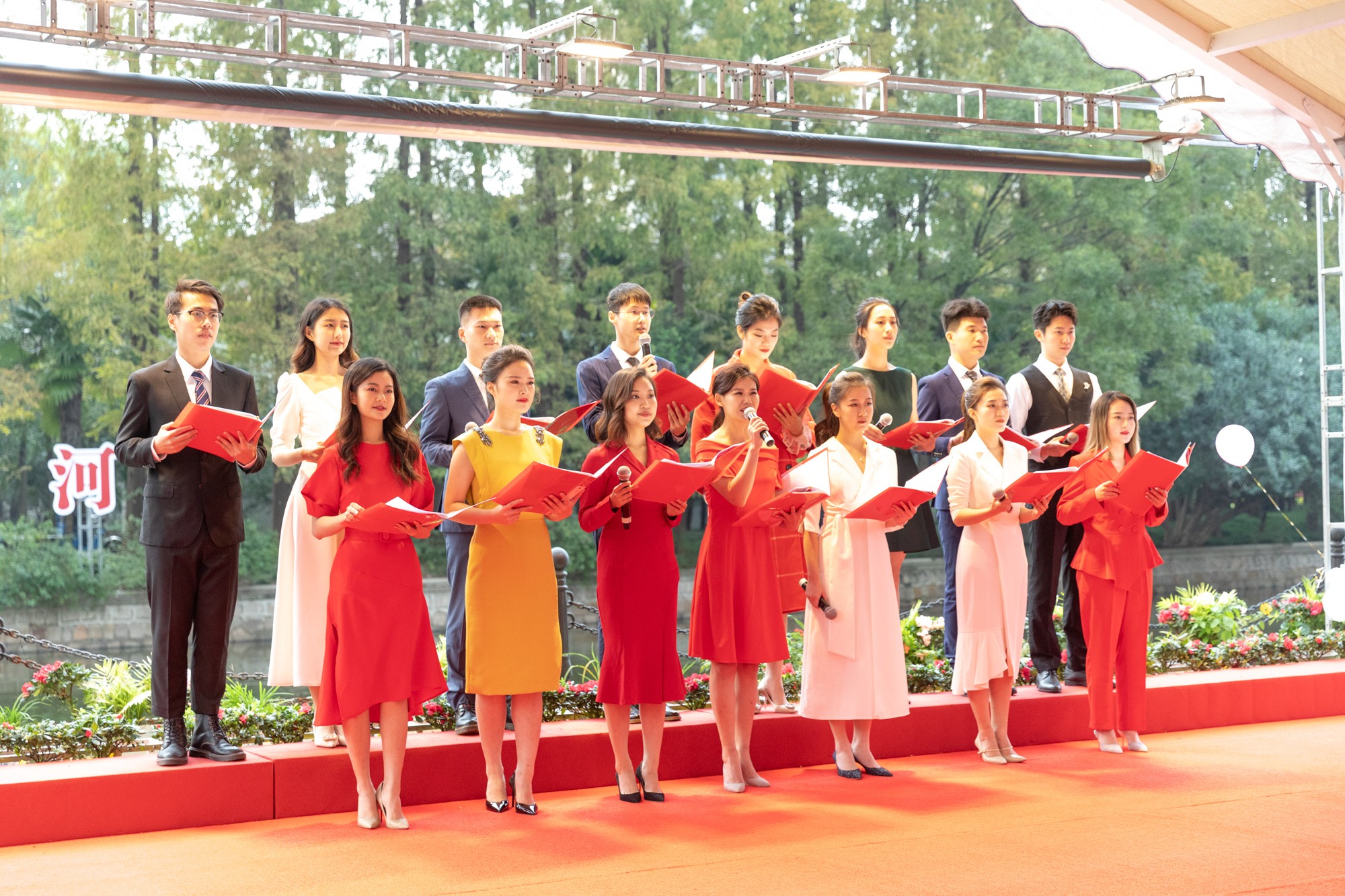 最后,全体演员和参与活动的嘉宾登台,齐声朗诵《师大礼赞》。“丽娃奔涌,值此六十七周年盛世华诞,愿华东师大,承前启后,继往开来;耀光华如日月永葆,施恩泽似丽娃绵长;耀光华如日月永葆,施恩泽似丽娃绵长!”
