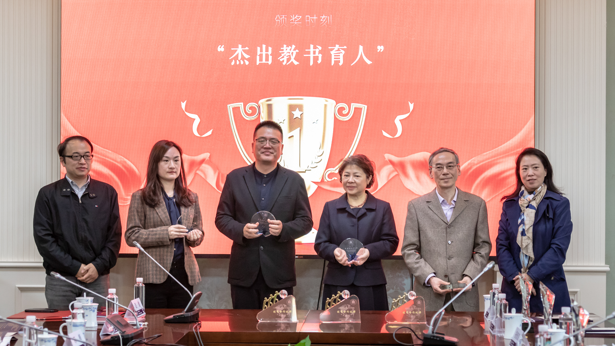 为感谢承担网络教育教学任务的院系教师的辛勤付出,随后的颁奖环节中彭超和韩楠向优秀教师代表——中文系吕志峰,学前教育系张琦,法律系黄欣,教师教育学院沈金荣颁发了“杰出教书育人”奖项。