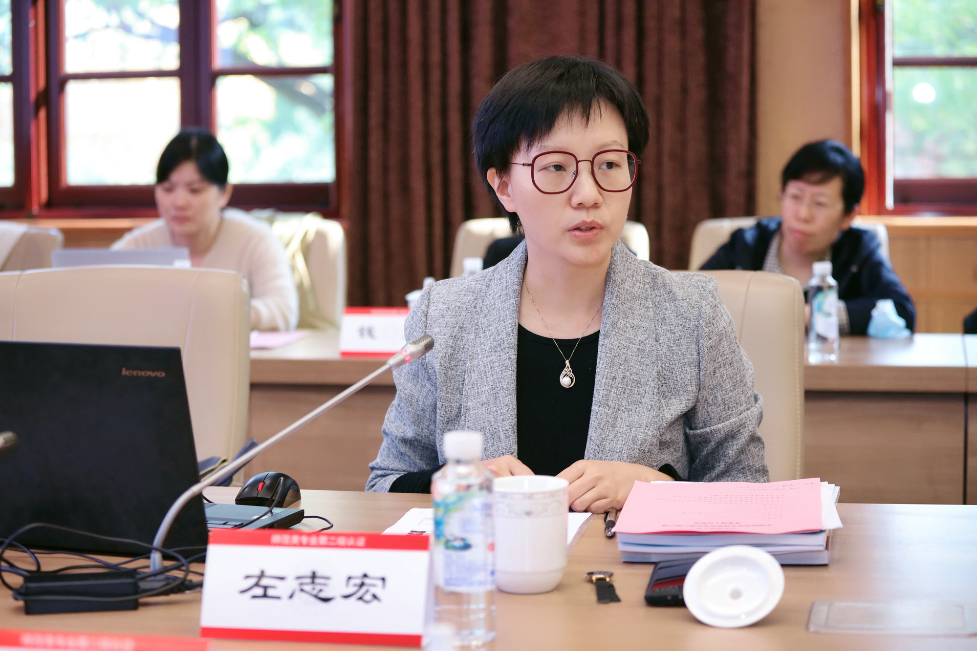 教育学部学前教育学系教工党支部书记左志宏代表认证专业,就自评报告的学科基础、培养体系、培育成效、改进思路四个方面作了进一步补充说明。