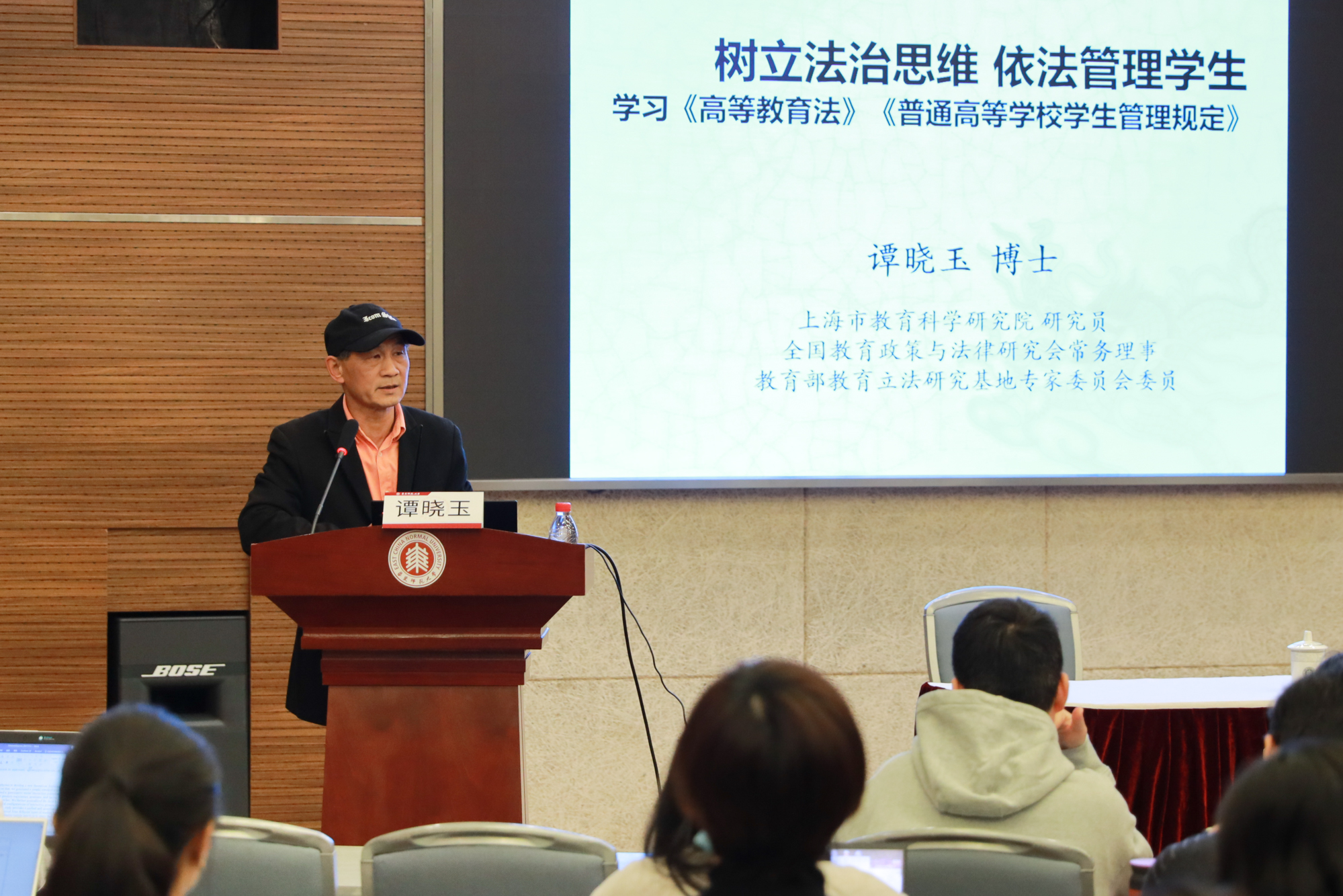 上海市教育科学研究院研究员谭晓玉作“树立法治思维,依法管理学生”主题讲座