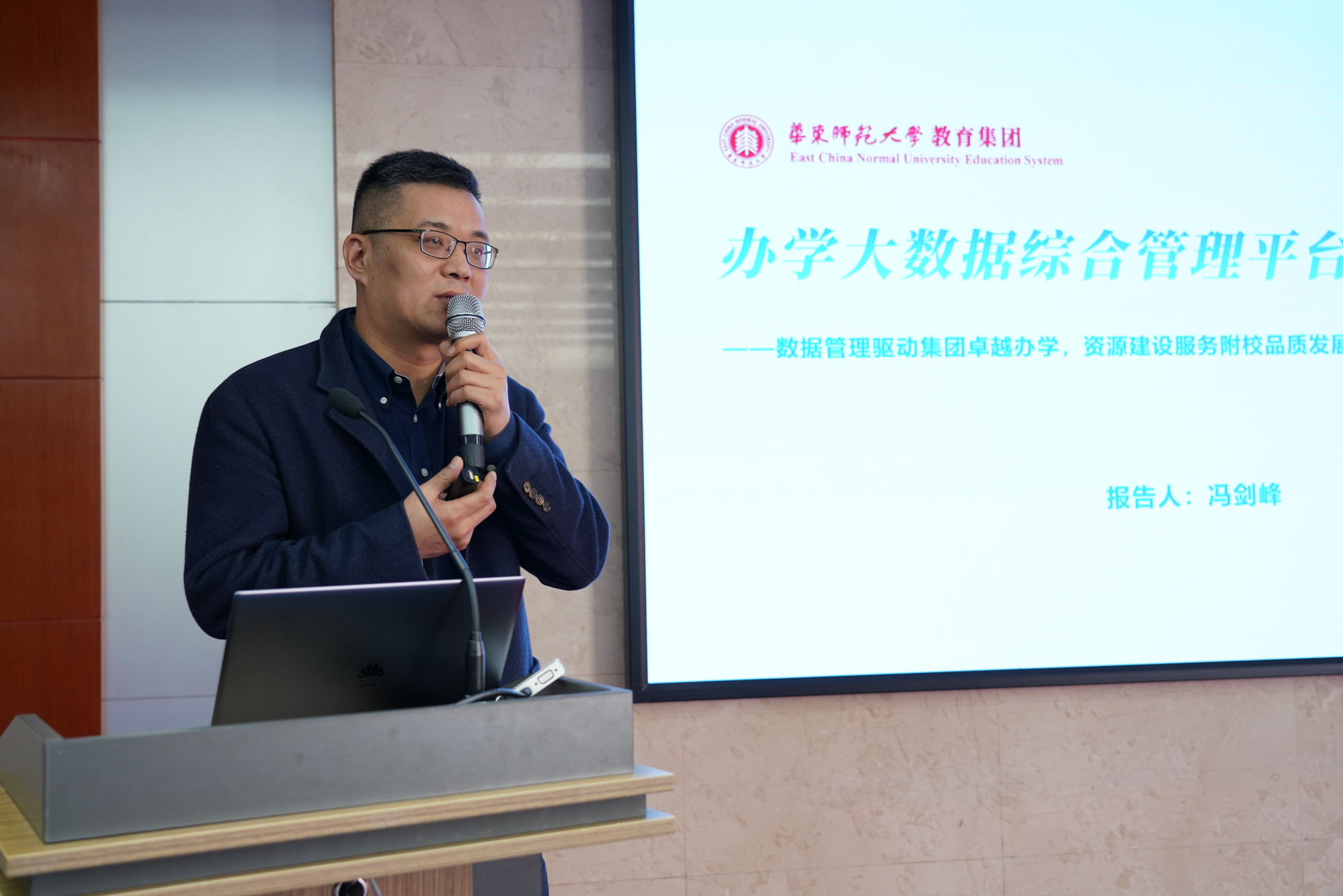 基础教育与终身教育发展部副部长、教育集团副主任冯剑峰介绍大数据综合管理平台
