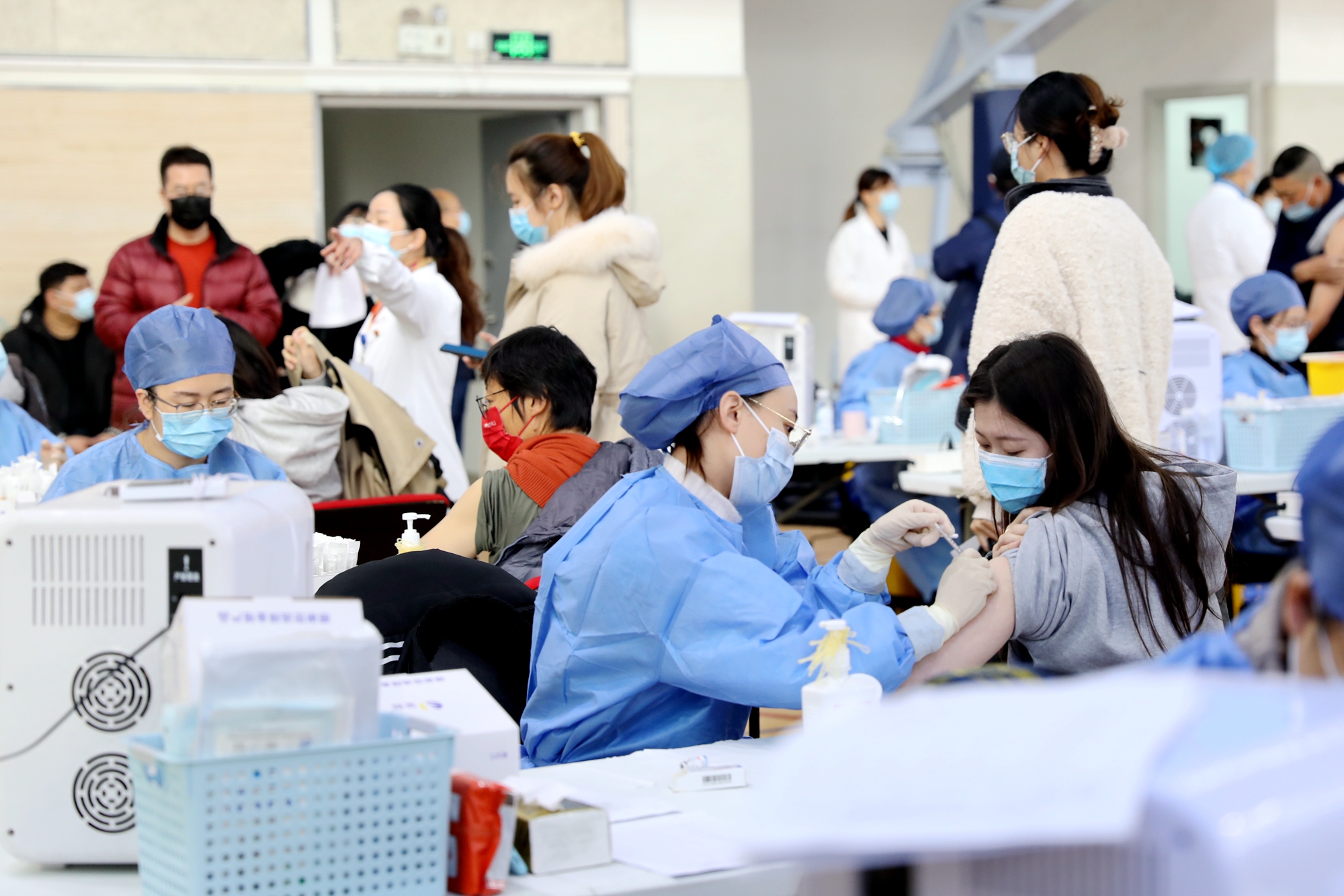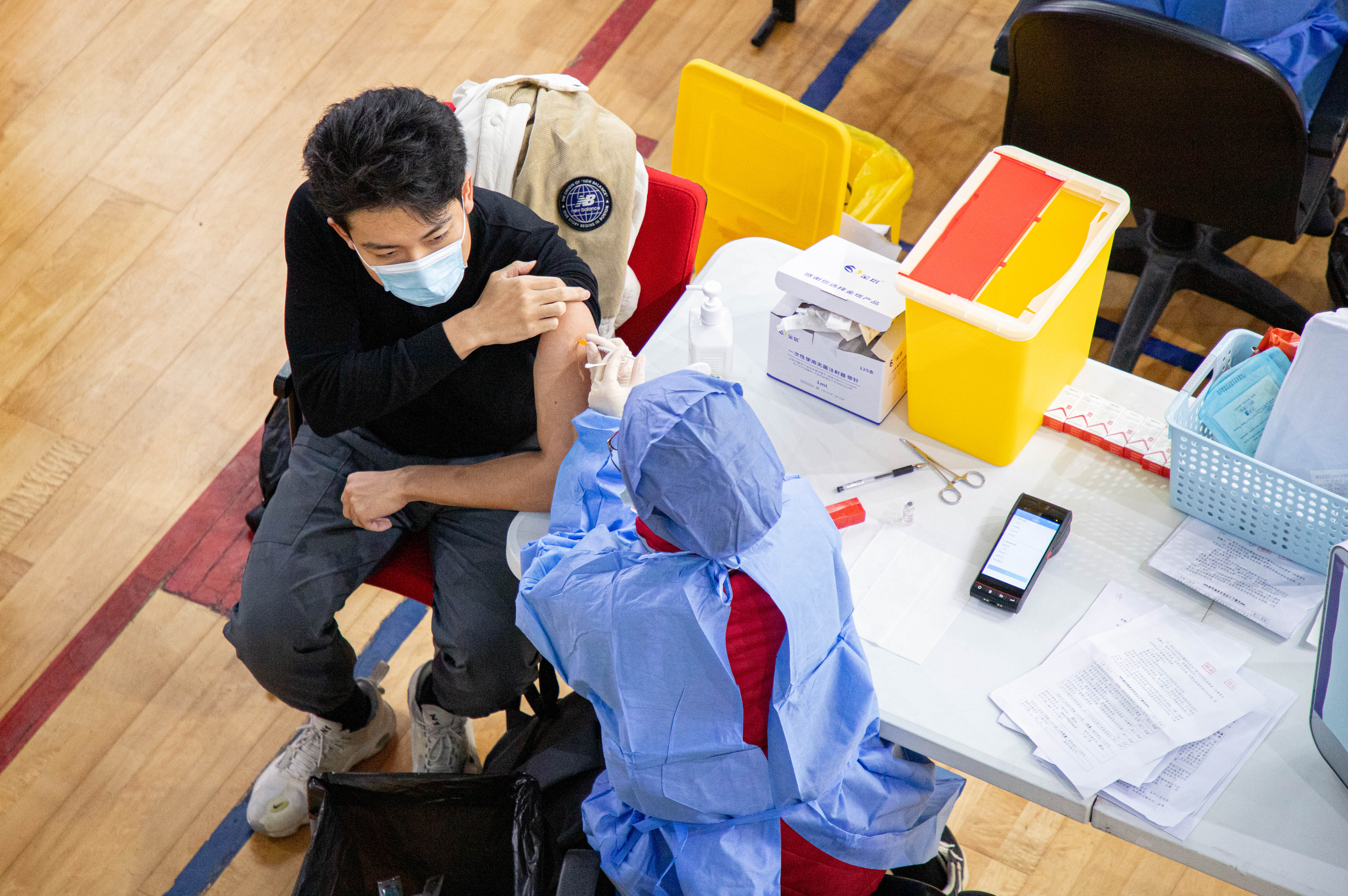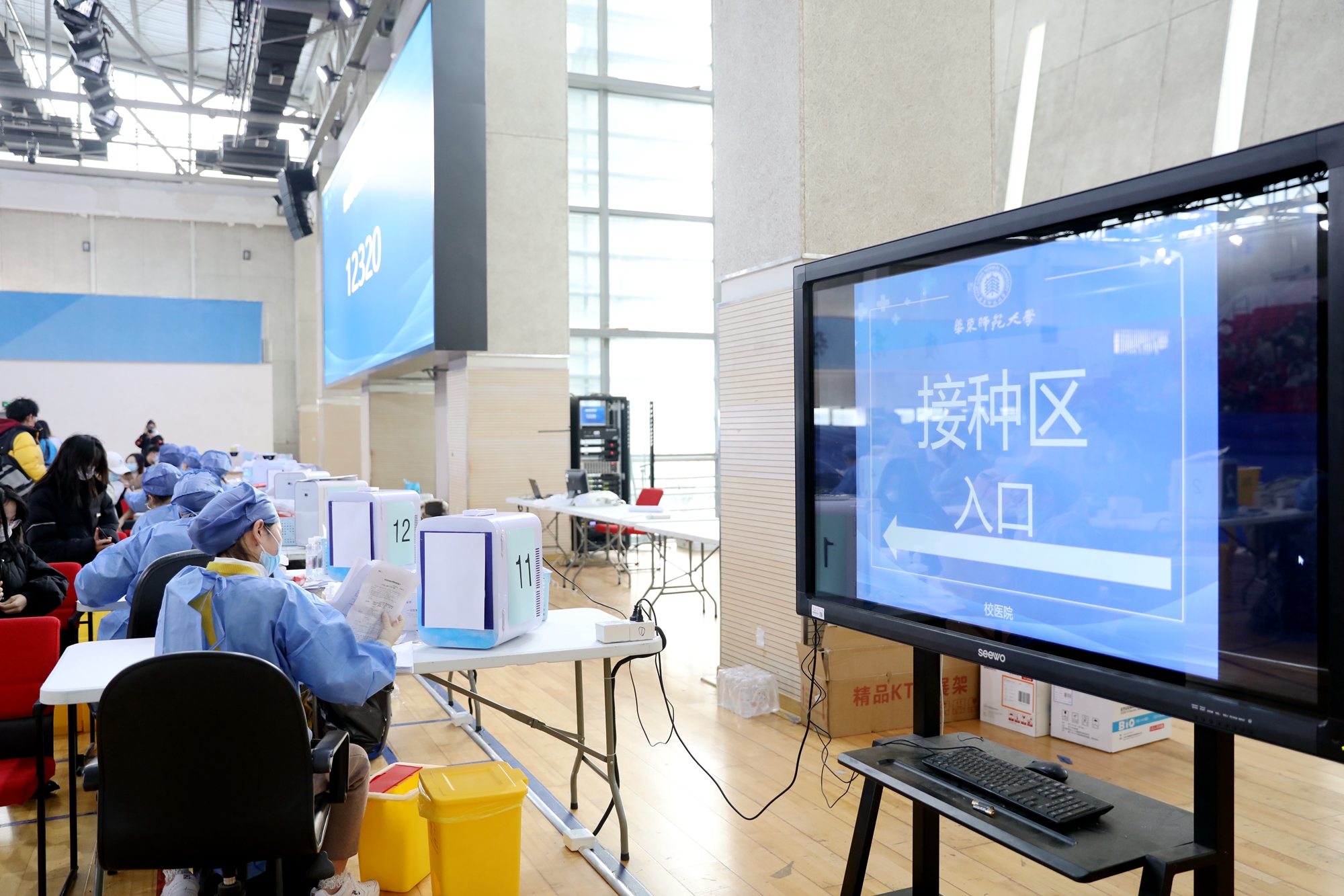 11月30日,虽然大风降温,华东师大闵行校区体育馆人来人往,大家一起为全民免疫屏障助“一臂之力”。为进一步巩固新冠病毒,人群免疫屏障,华东师大按照“知情同意,应种尽种”原则,11月30日和12月1日在闵行校区集中组织开展新冠病毒疫苗加强免疫接种。