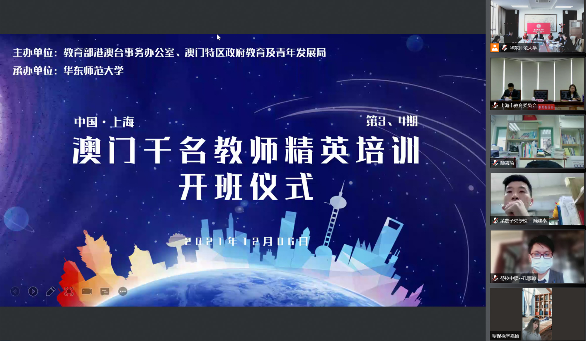 12月6日,澳门千名教师精英培训计划(第三、第四期)开班仪式在beat365正版唯一官网举行,仪式线上线下同步举行。该项目由教育部港澳台事务办公室、澳门特区政府教育及青年发展局联合主办,华东师大承办。