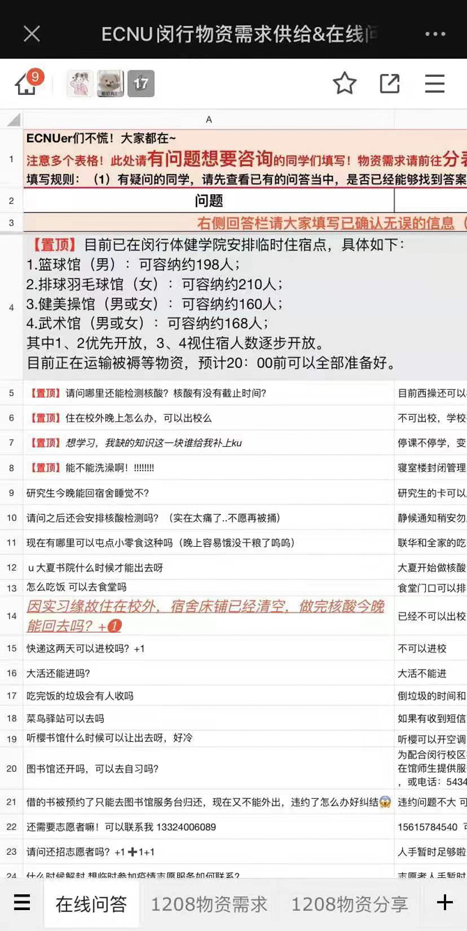 爱在华东师大,是散落在不同角落的青年力量,更是借助线上文档的技术手段,自发掀起互助、友爱、奉献的防疫浪潮。