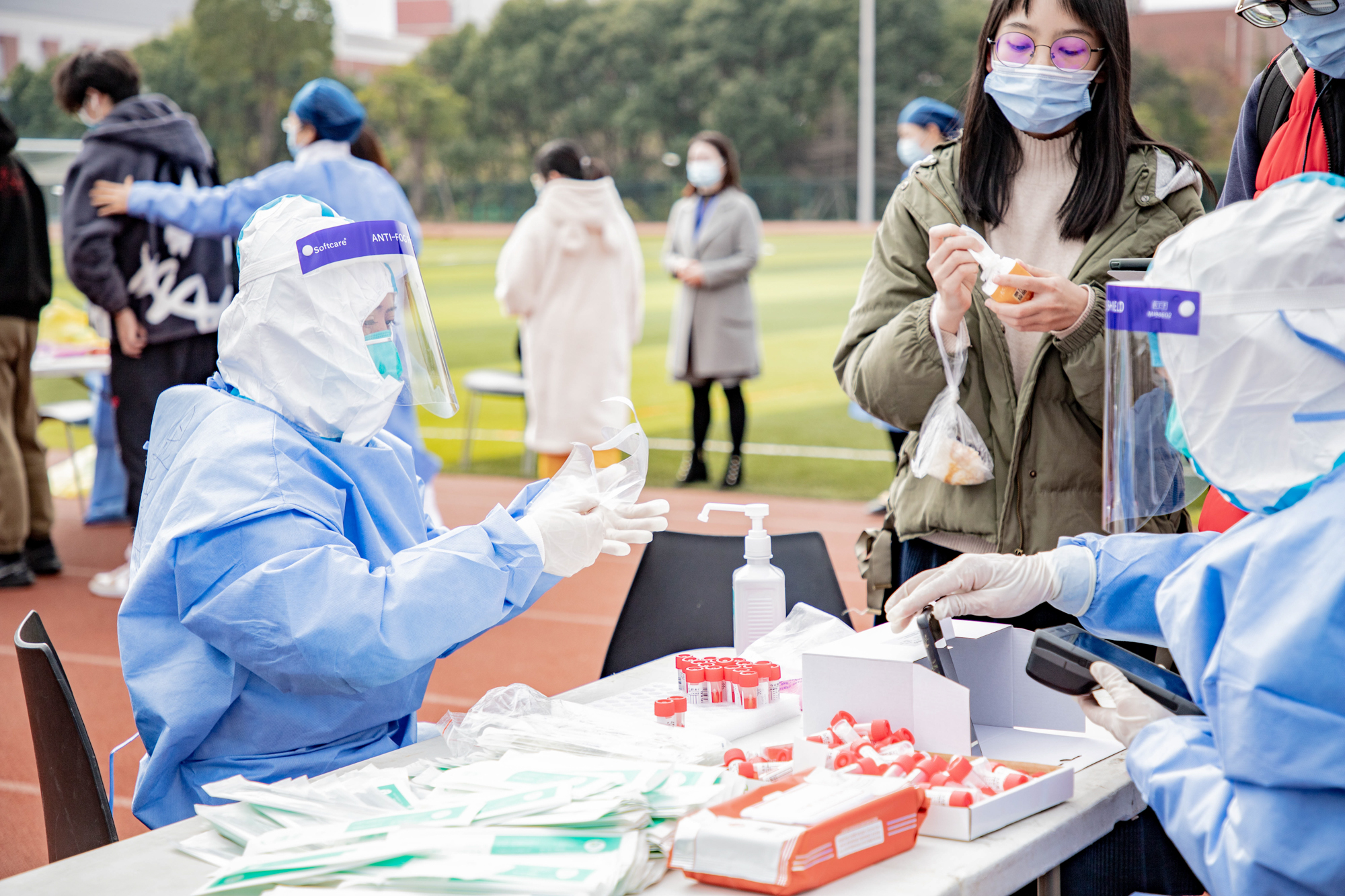 今天下午开始的第二轮全员核酸检测已近尾声,后续闵行校区师生将开展14天自我健康管理。与此同时,加强针注射工作今明两天正在普陀校区进行。