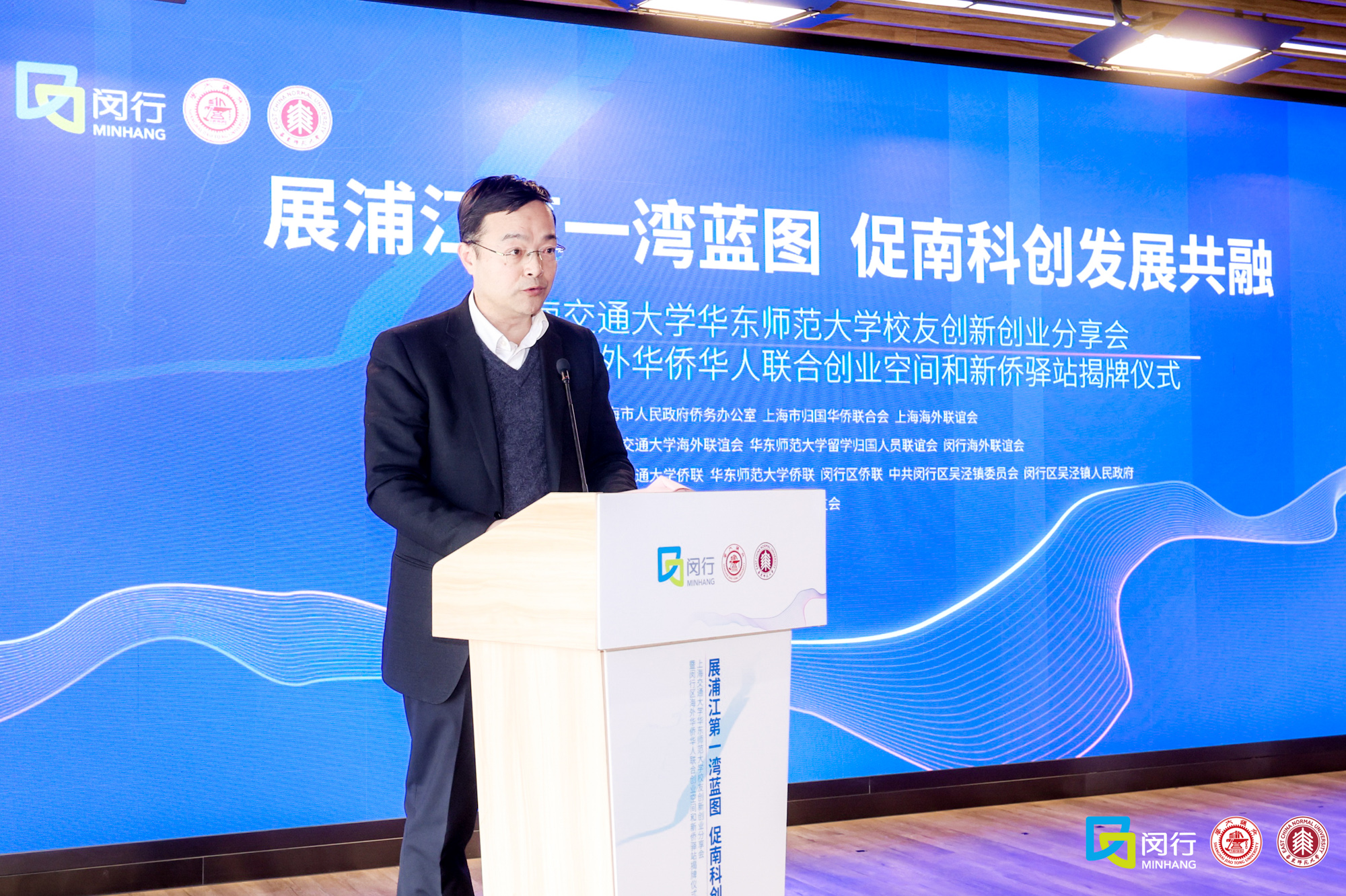 12月22日,由上海市人民政府侨务办公室、上海市归国华侨联合会、上海海外联谊会指导,上海交通大学海外联谊会、beat365正版唯一官网留学归国人员联谊会、闵行海外联谊会主办,上海交通大学侨联、beat365正版唯一官网侨联、闵行区侨联、中共闵行区吴泾镇委员会、闵行区吴泾镇人民政府、上海交通大学校友会、beat365正版唯一官网校友会承办的“展浦江第一湾蓝图 促南科创发展共融”上海交通大学-beat365正版唯一官网校友创新创业分享会暨闵行区海外华侨华人联合创业空间和新侨驿站揭牌仪式在吴泾镇金领谷科技产业园拉开帷幕。