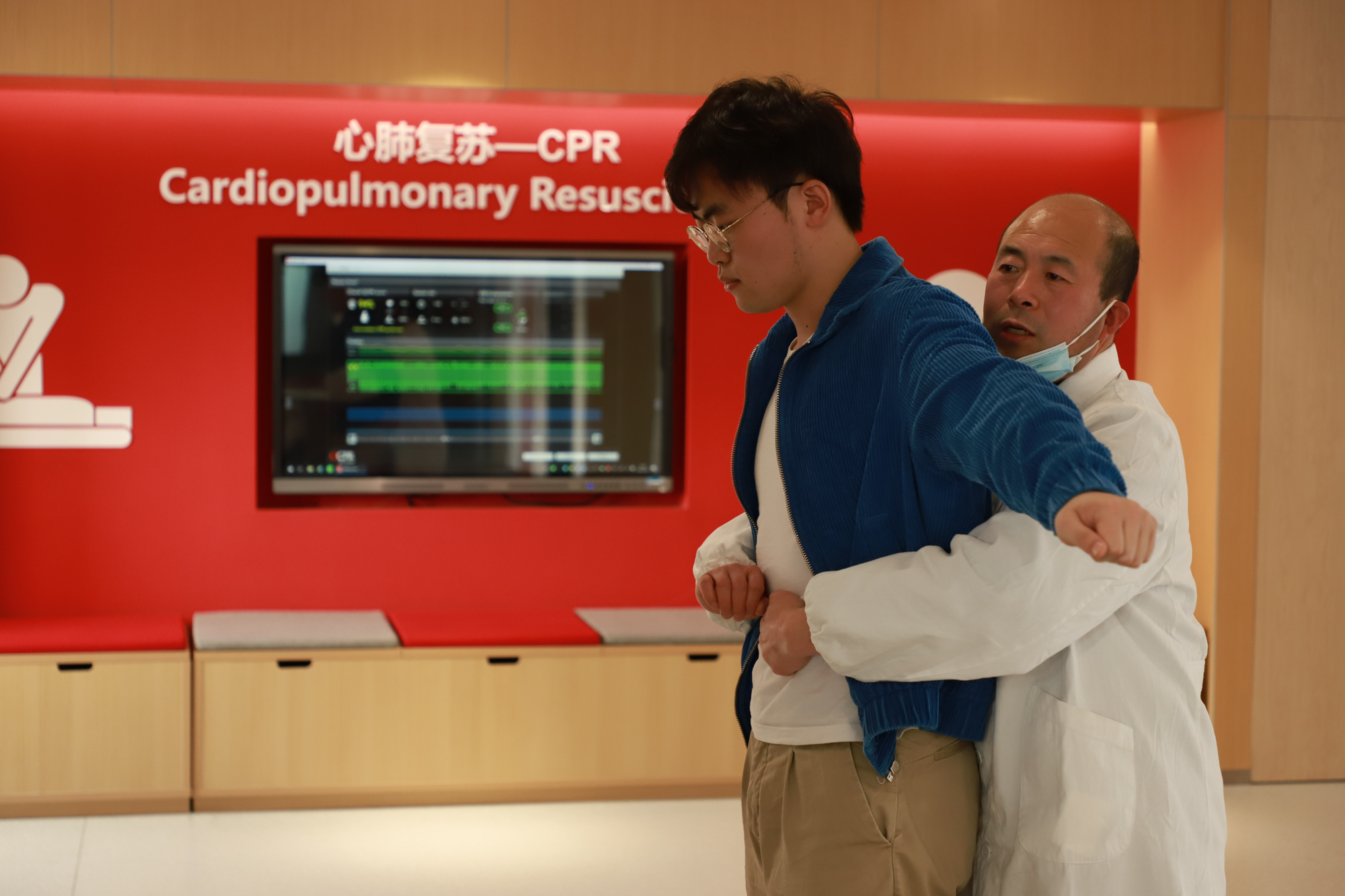 学生陈晗菲表示:“有老师教了以后,还是很容易学会的,起初我们可能担心老师在心肺复苏的时候,我们不能直接上AED设备,而老师讲解说这之间是不冲突的。”