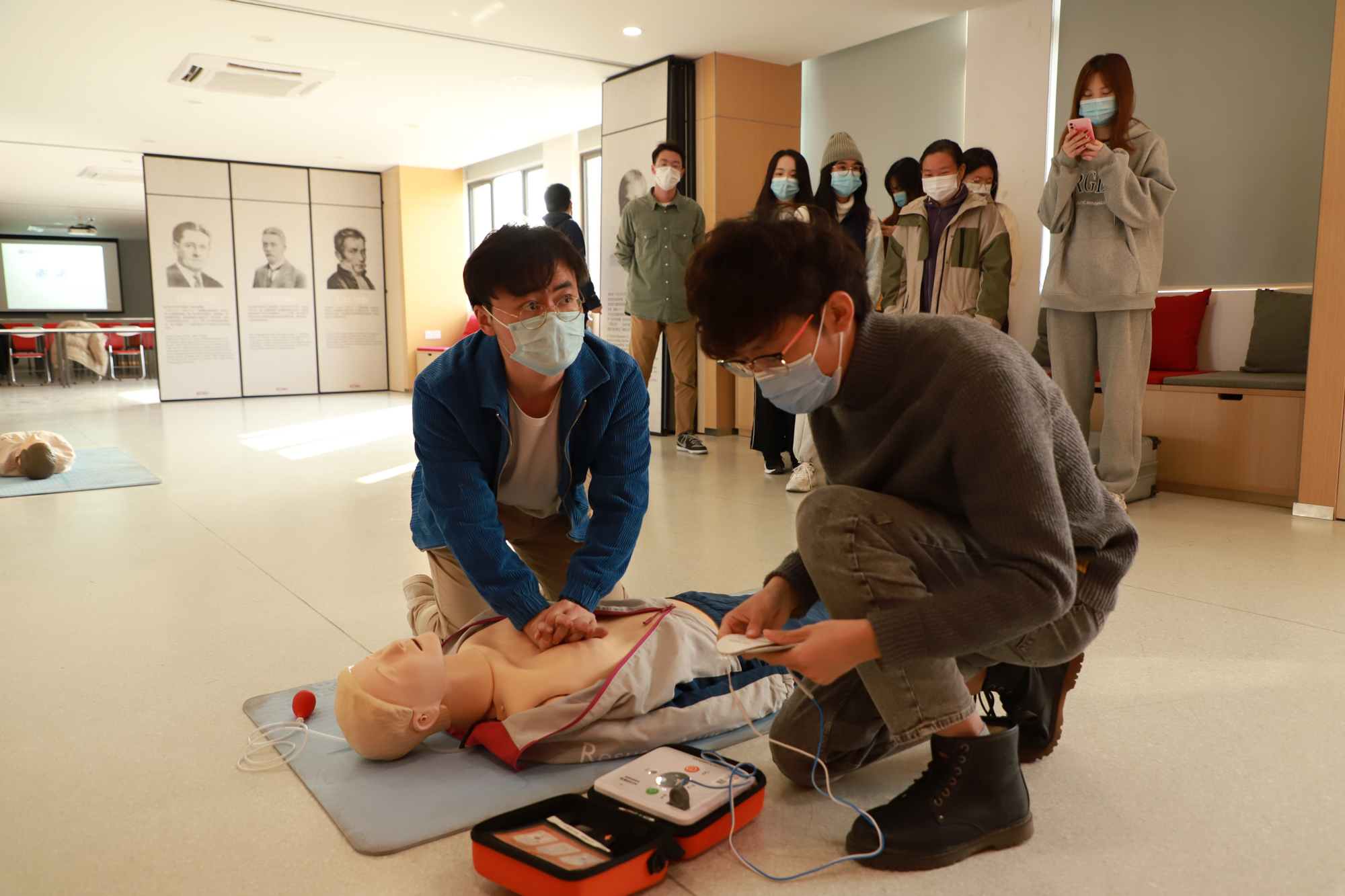 “希望切实提高我们在校学生的急救知识和能力,去提高他们助人的本领和意识,来激发我们青年学生的社会担当意识”,大夏书院辅导员曹安琦表示。