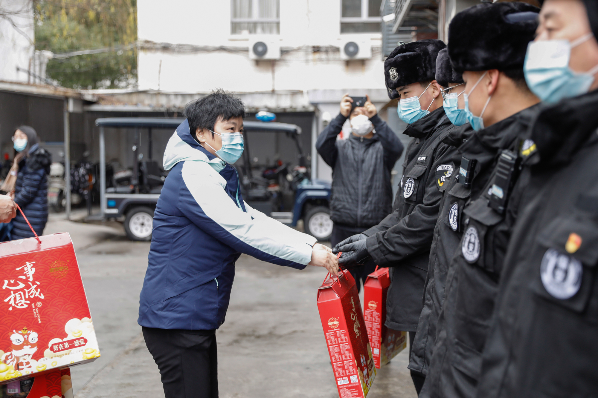 辞金牛,抱寅虎。除夕的华东师大校园其乐融融、欢庆祥和。在两校区大学生活动中心大厅里,华东师大党委书记梅兵,校长钱旭红,副校长雷启立、顾红亮分别在两校区为留校学生送上大礼包,包含旺旺集团捐赠的零食大礼包、校基金会捐赠的校庆口罩以及祝福红包。