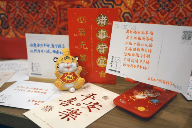 辅导员刘骏手写福签的文字都暗合了赠予学生的姓名