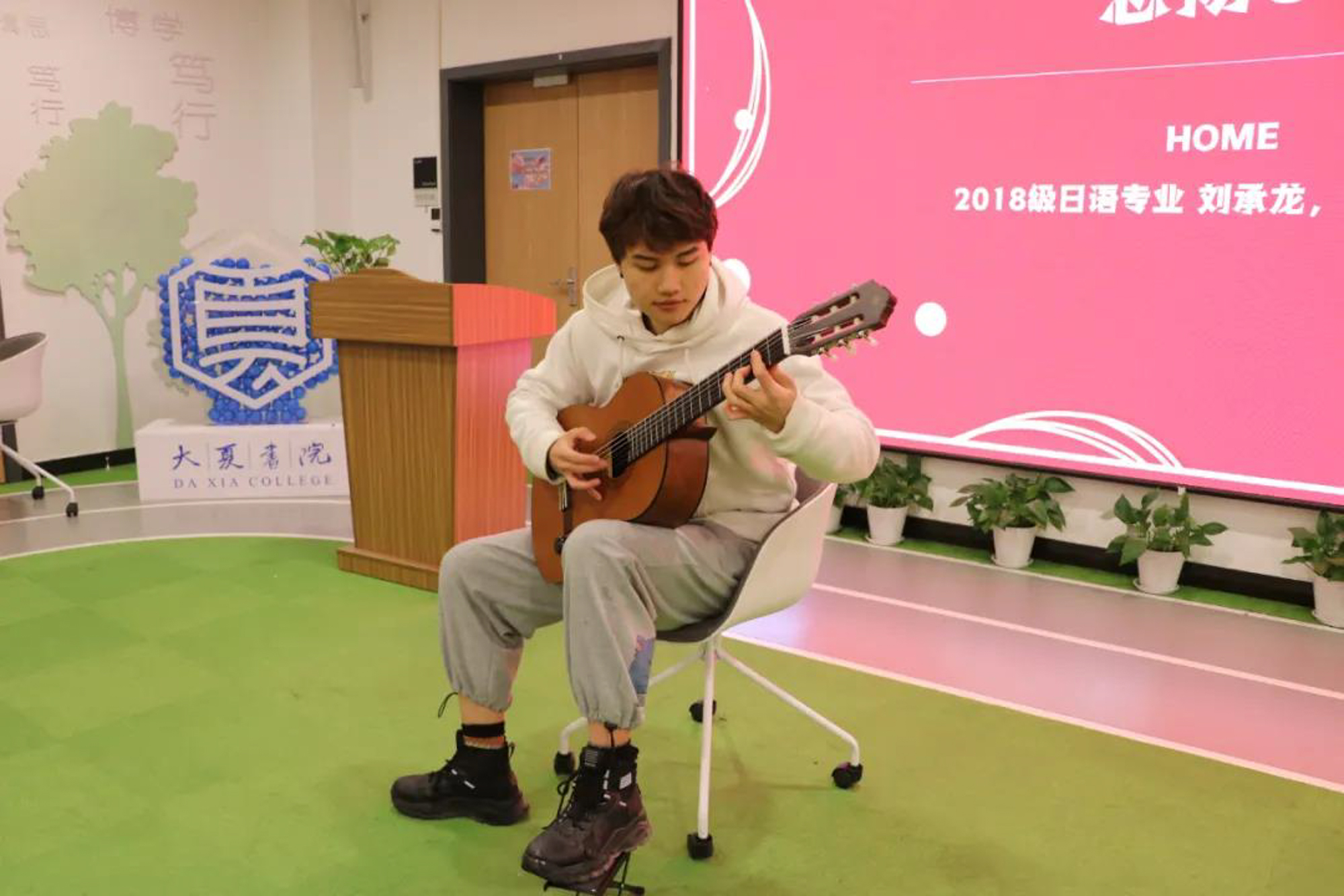 大夏书院2018级日语专业的泰国籍留学生刘承龙为师生送上表演