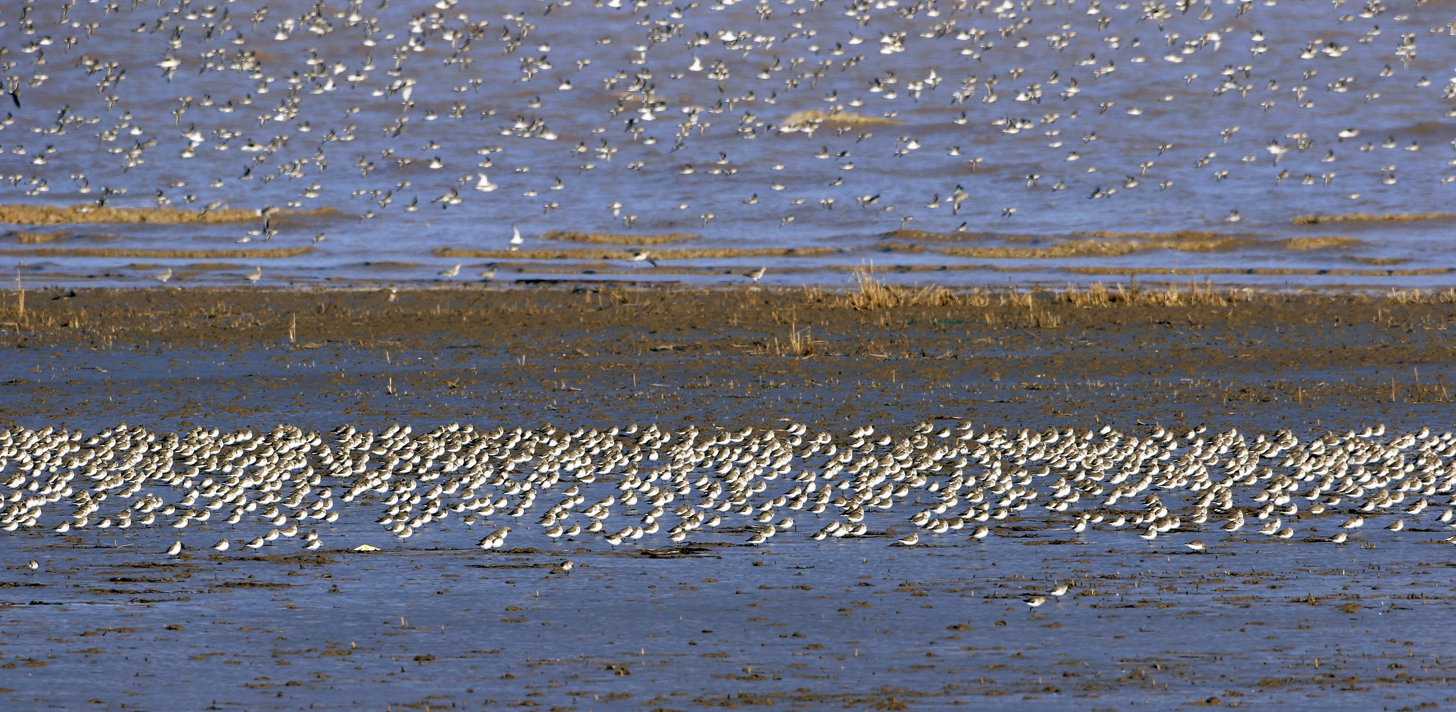 冬尽春来,崇明东滩湿地候鸟栖息(崇明东滩保护区 吴巍摄)