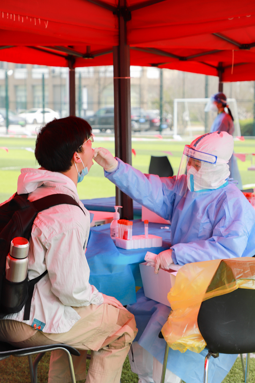 3月14日,学校在两校区设三个核酸检测点,做到“一米线”“三件套”“五还要”,组织开展第2轮师生员工全员核酸检测。