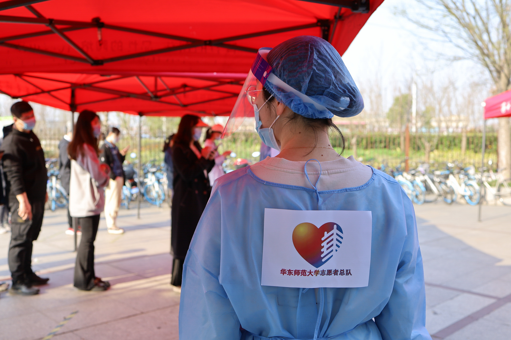 经需求配岗,协助进行核酸检测、食堂秩序引导、物资运送等志愿服务活动。今天,共有166名志愿者在岗做好各项志愿服务工作。同学们守望相助,共克时艰。