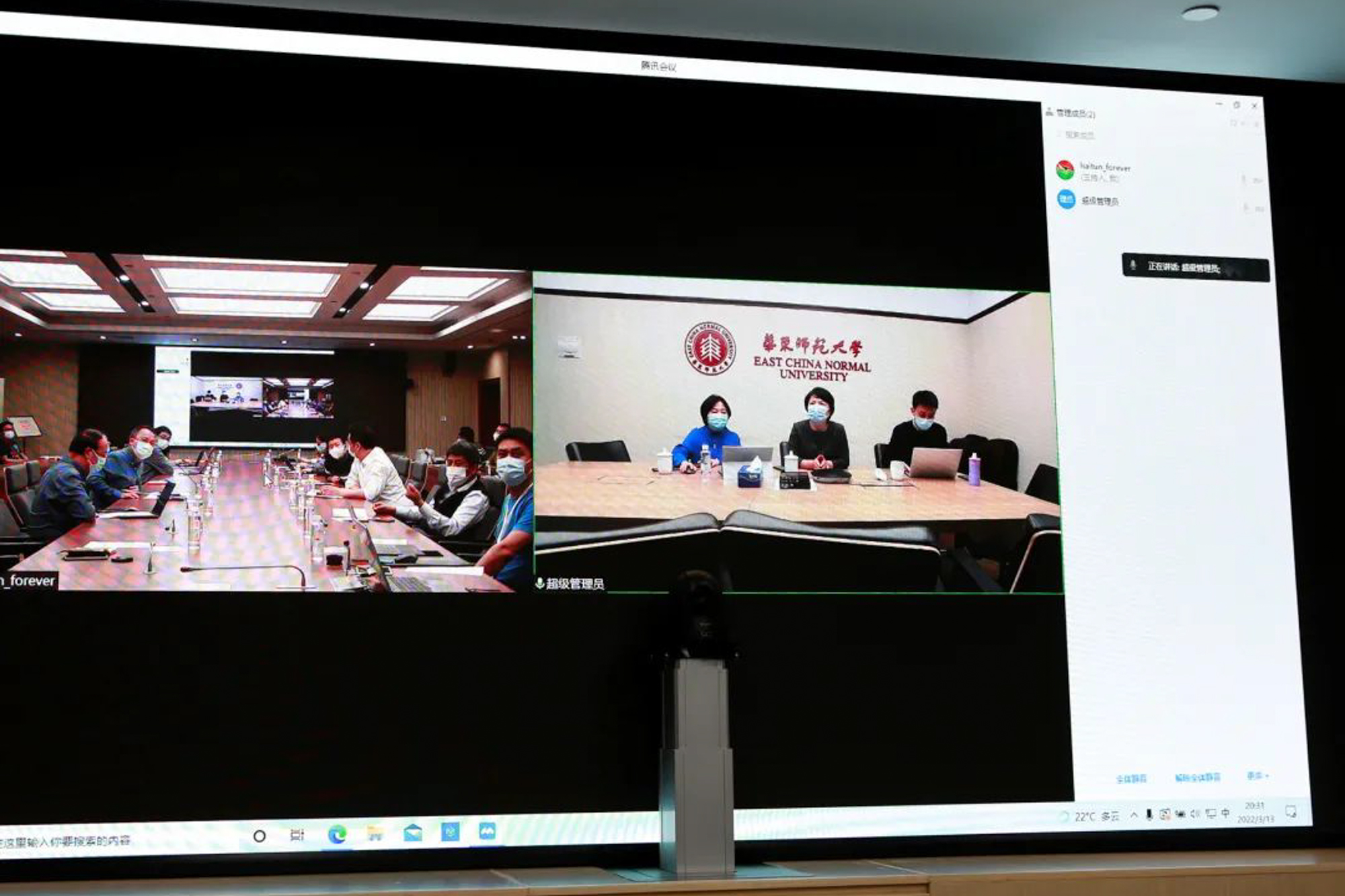 华东师大疫情防控工作专班总指挥、副校长戴立益会前协调部署了两校区闭环管理期间的核酸检测事宜;校党委副书记朱民、副校长周傲英、戴立益就校园闭环管理工作方案细节提出建议。