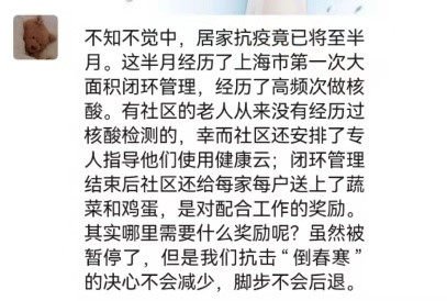 自3月13日学校进入疫情防控闭环管理开始,团学骨干一直就是校园防疫的先锋部队,一支支行动力强的团学队伍冲在疫情防控的第一线……历史系孙帜同学是团学队伍中的“紧急接单员”,他的口号是“一旦接单,风雨无阻”,除了上课,无论何时,他随时在线,24小时开机,凡是交给他的任务,无一不保质保量、争分夺秒完成;生态与环境科学学院2021级环境学系硕士研究生团支部团员吴潇宇,是这次闭环管理中闵行校区研究生公寓志愿者负责人,他表示“在这次防疫志愿工作中,化身‘蓝朋友’‘蓝马甲’的团学骨干志愿者们每天随叫随到、任劳任怨,克服重重困难一同维护核酸检测的秩序、为同学取送应急药品与卫生用品、运输电脑等急需品等等,为能在打赢学校疫情防控阻击战中贡献一份青春力量,我不禁被志愿者们的温暖与担当所感动,感受到大家的勇敢与无畏,也感受到‘爱在华师大’!”