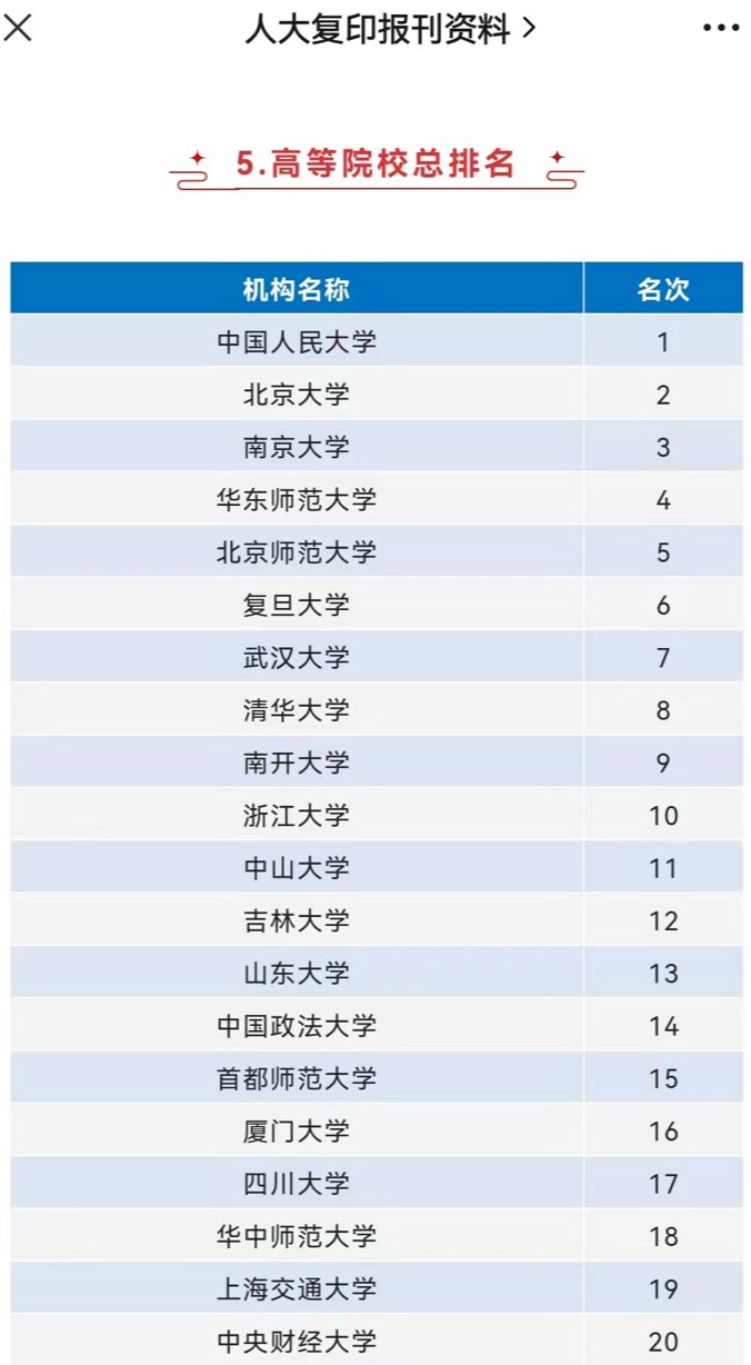 人大复印报刊资料转载指数排名根据人大复印报刊资料学术系列期刊在2021年度转载的学术论文数据,对中国人文社科期刊和教学科研机构进行统计排名。此排名自2001年起每年3月份定期发布。